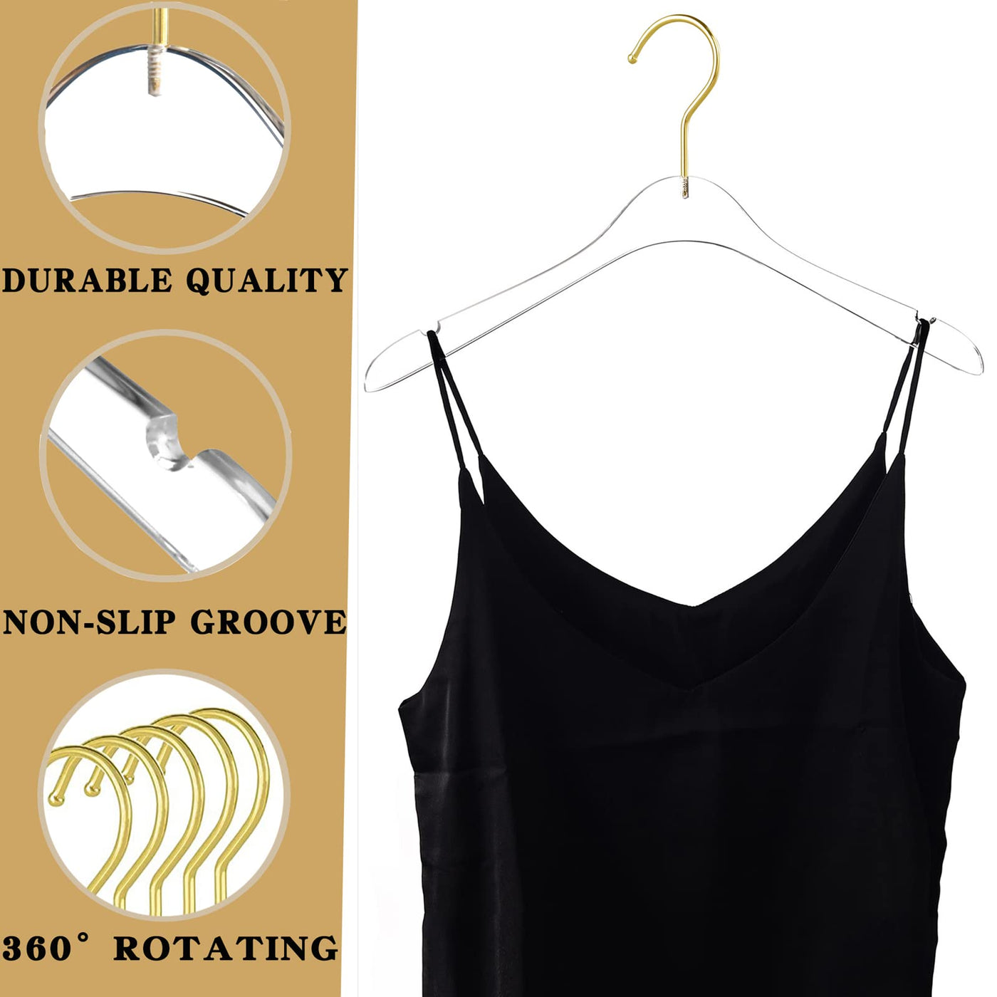 Besser 15 Pack Acrylic Hangers With Gold,Acrylic Clear Hangers,Premium Crystal Dress Hangers Swivel Gold Hook Luxurious Shiny Cl