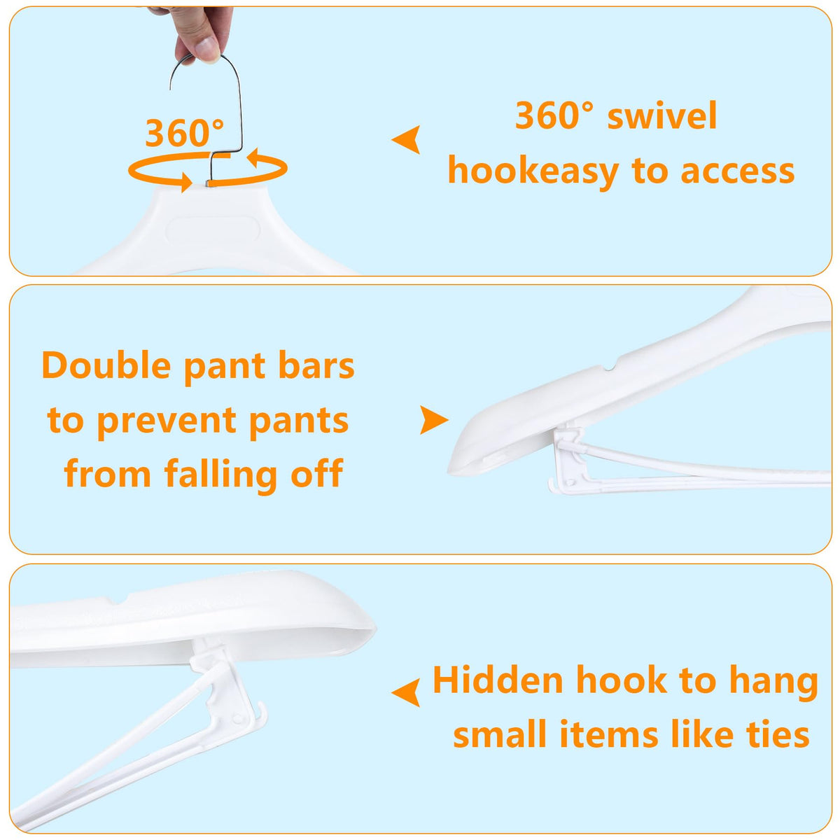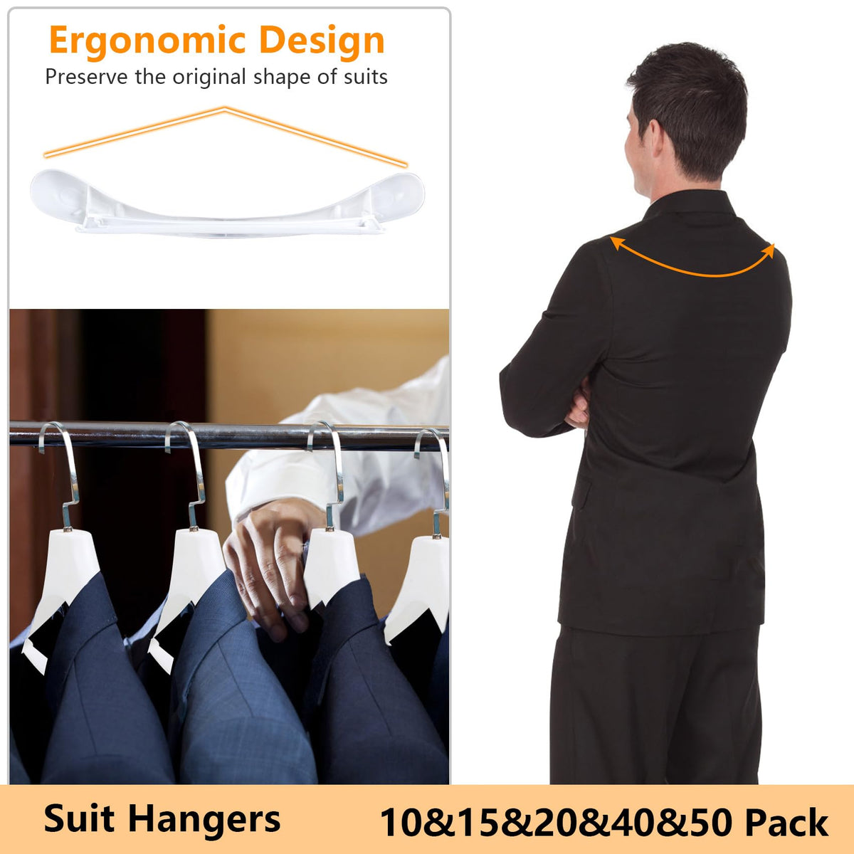 Dedu Suit Hangers For Men 10 Pack, Extra Wide Hangers Non Slip Width 17.7'', White Coat Hangers Thick Plastic With Pants Bar 360