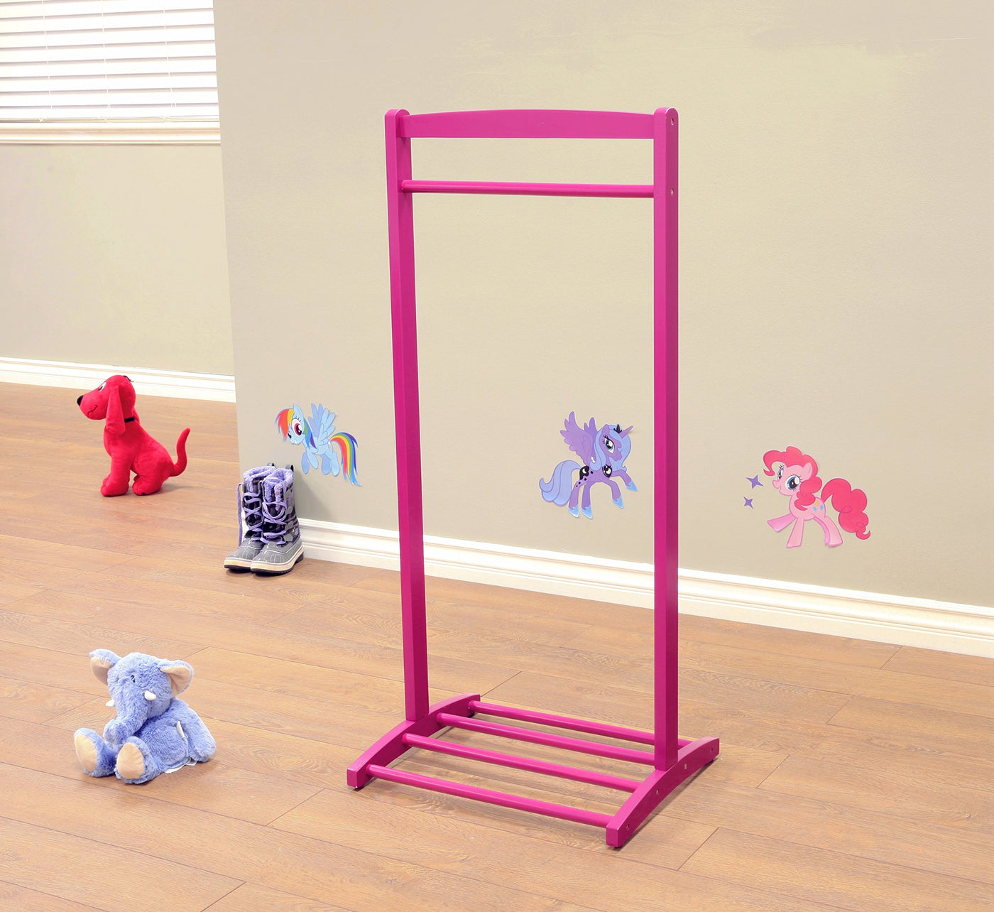 • Q: Can this clothes hanger be used outdoors? A: It is primarily designed for indoor use, particularly in children's rooms or entryways.