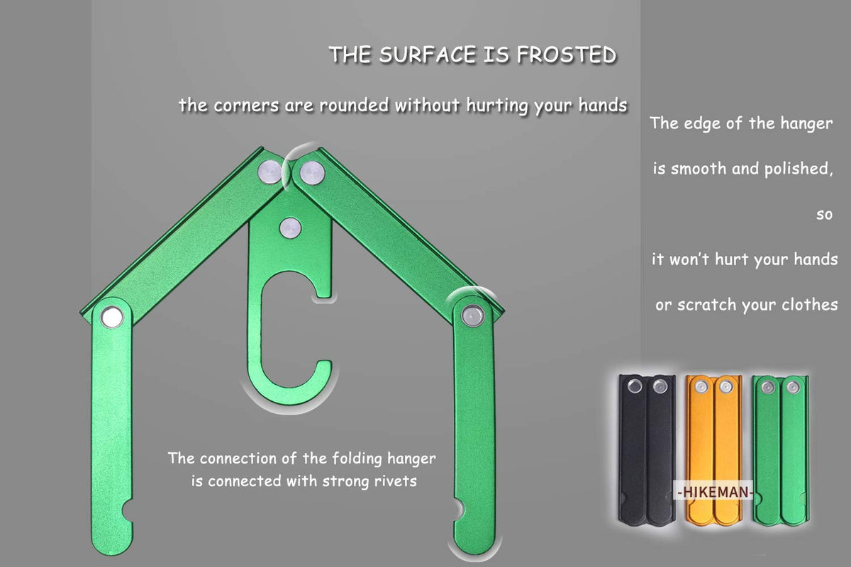 - Q: What material are the Hikeman Travel Hangers made from? A: The Hikeman Travel Hangers are made of premium aluminum alloy, providing durability and strength for holding heavy clothing.