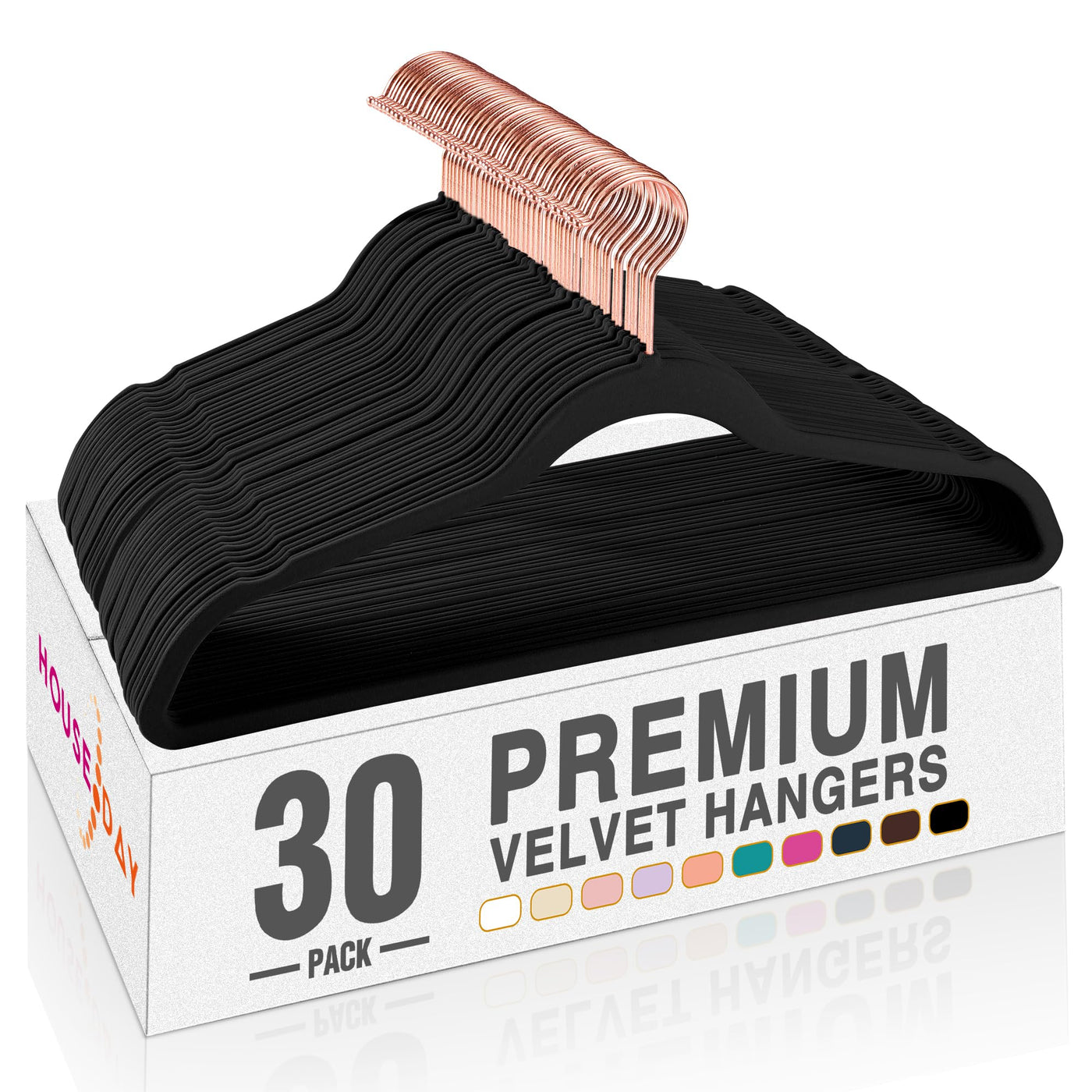 House Day Velvet Hangers 30 Pack, Premium Clothes Hangers Non-Slip Felt Hangers, Sturdy Black Hangers Heavy Duty Coat Hangers, D