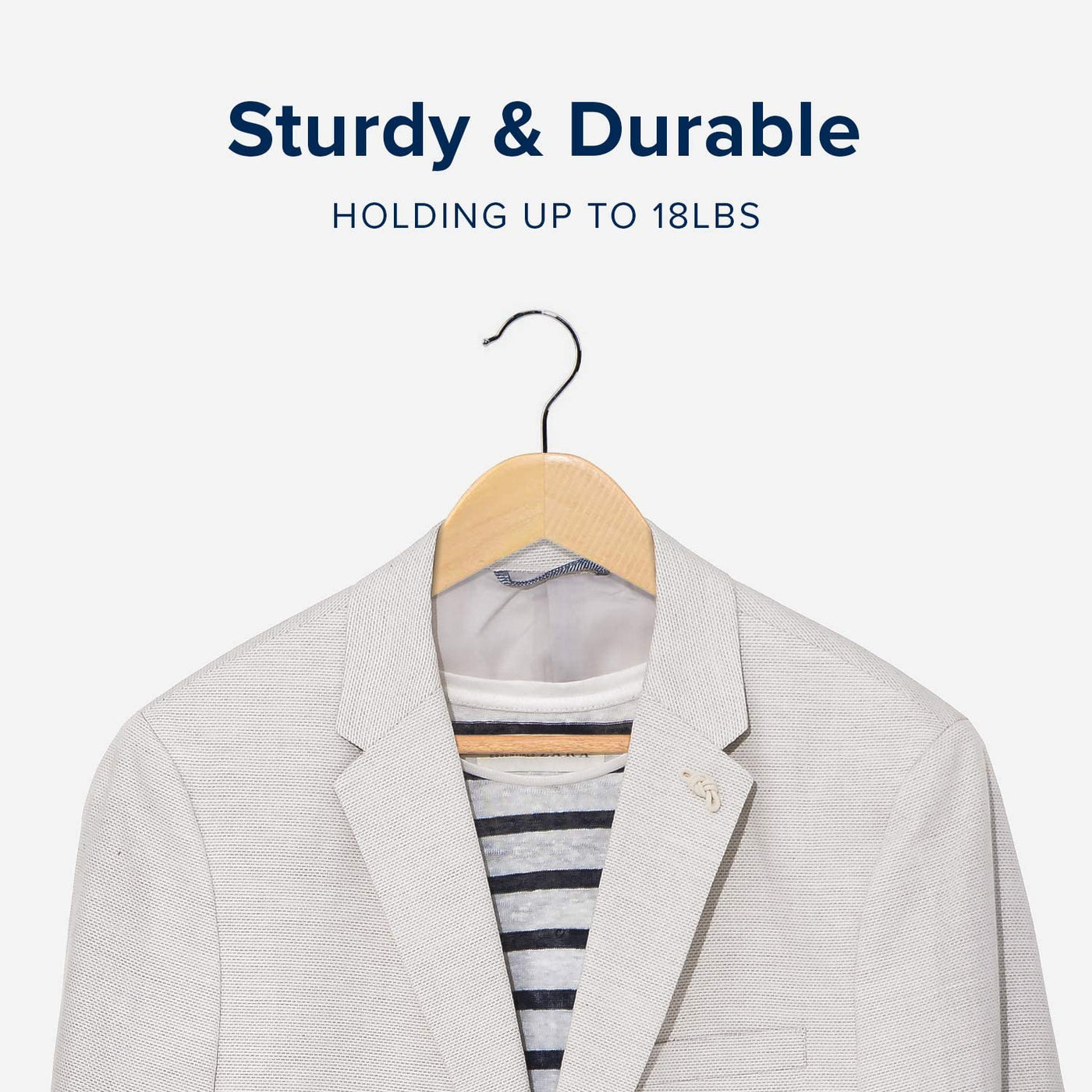 • Q: How much weight can these wooden hangers hold? A: These heavy-duty wooden hangers can hold up to 18lbs, making them suitable for hanging heavy winter clothing and bulky coats.