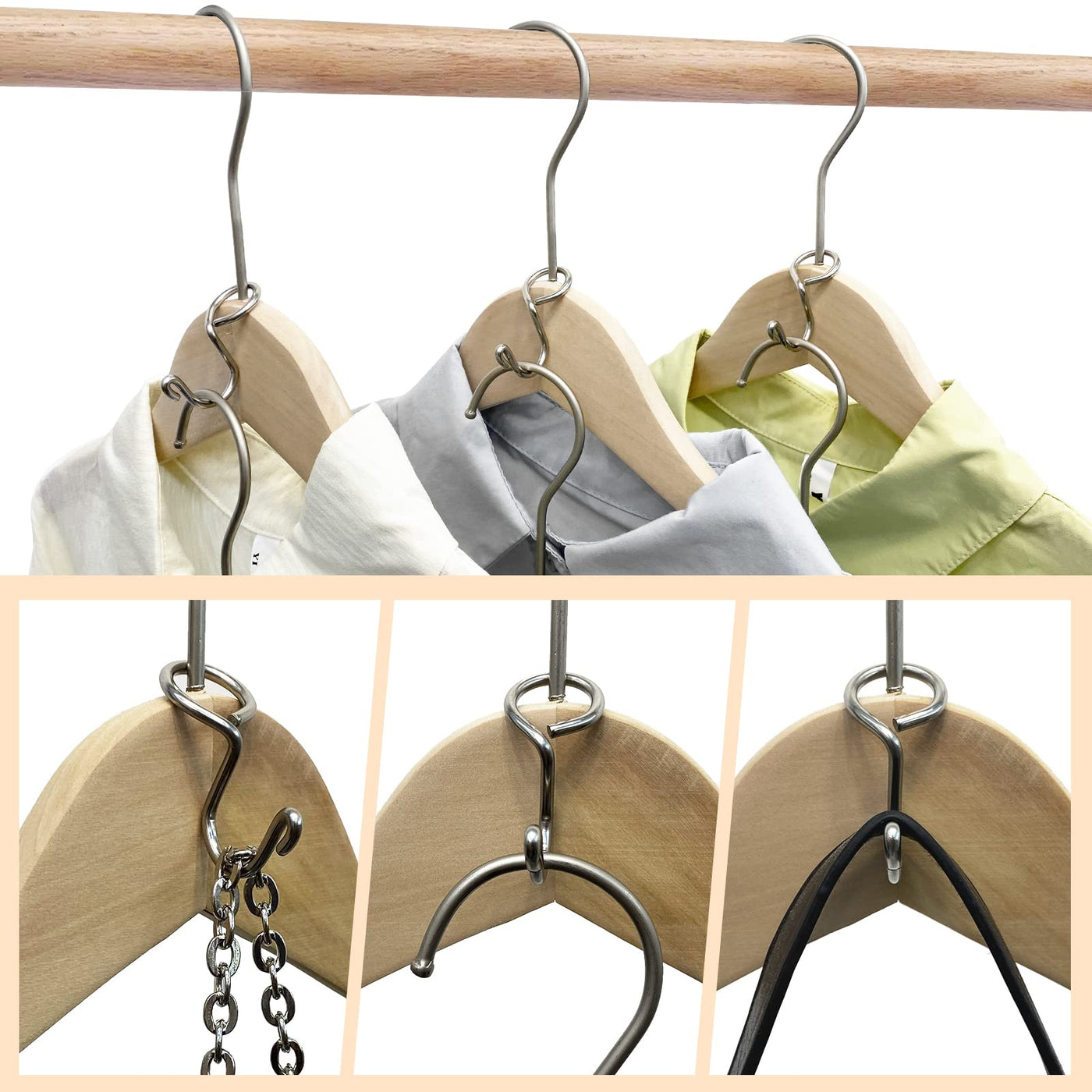 - Q: Can I use these hooks for different types of clothing? A: Absolutely! The combined hangers can be used to hang a variety of clothing items such as shirts, blouses, pants, skirts, and more.