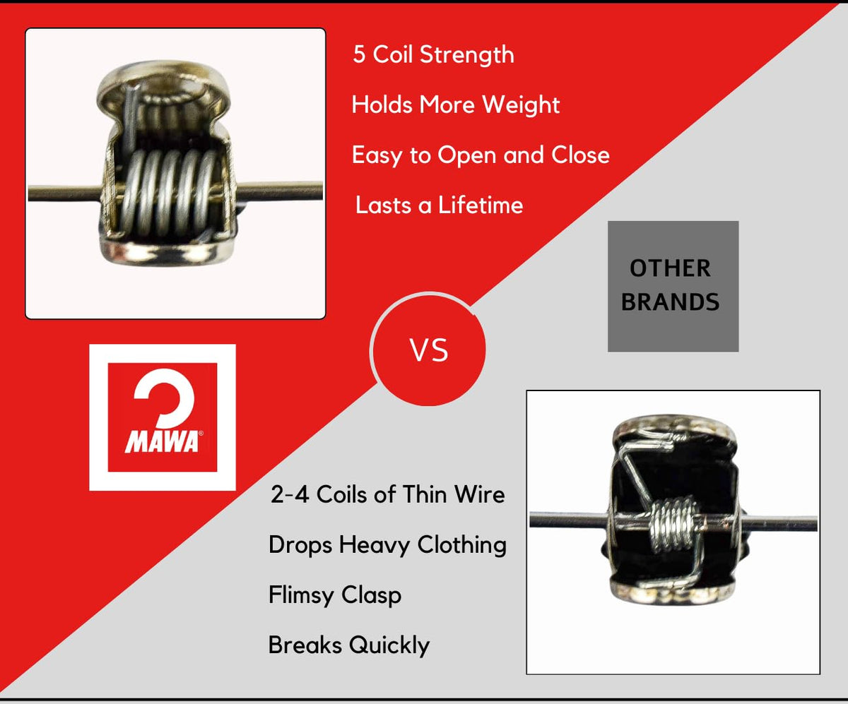 • Q: What materials are used to make the Mawa Non-Slip Clothes Hanger? A: The Mawa Non-Slip Clothes Hanger is made from German cold-rolled steel, ensuring durability and strength.