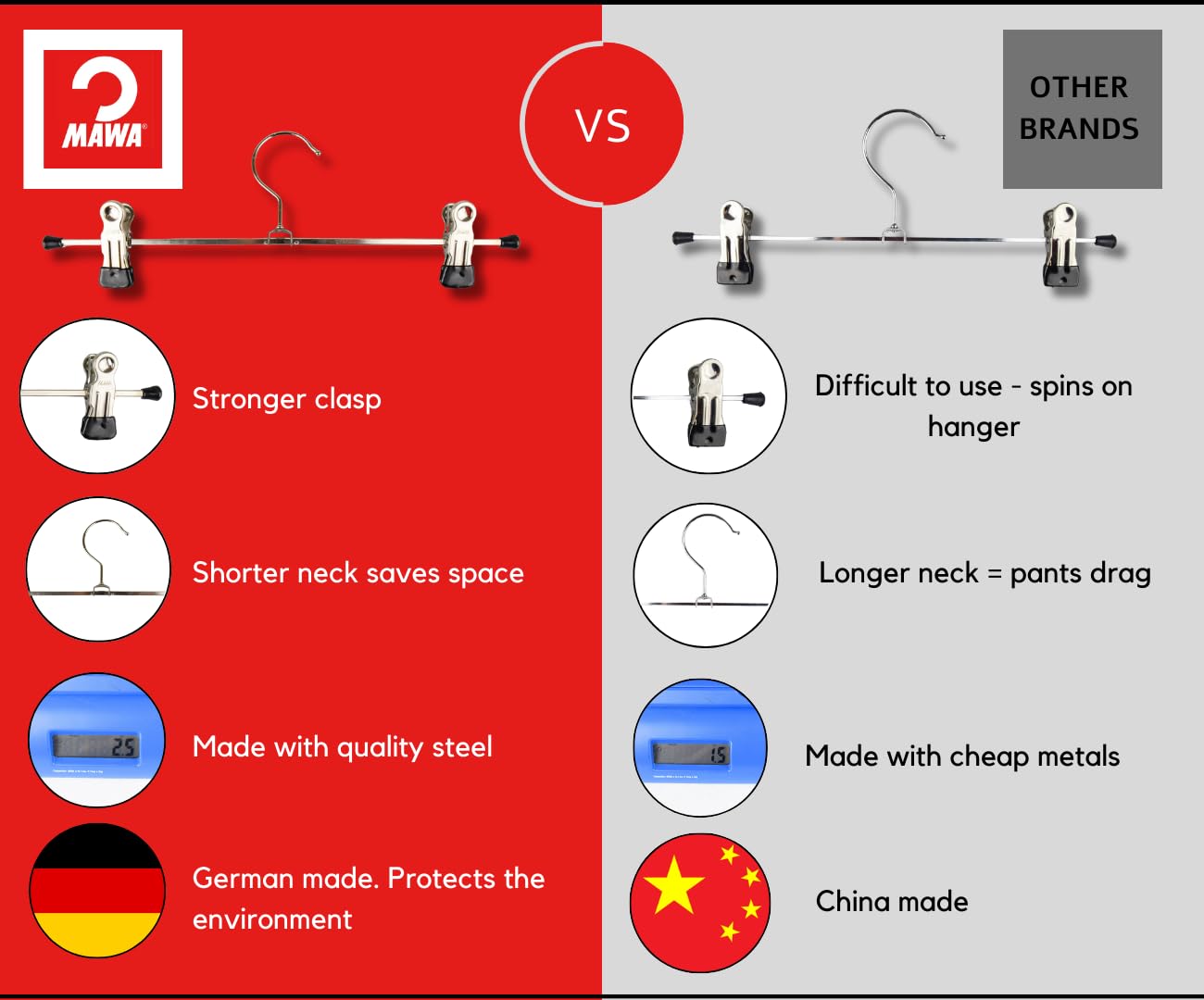 • Q: Is the Mawa hanger made in Germany? A: Yes, the Mawa hanger is 100 percent made in Germany, ensuring high-quality materials and craftsmanship.