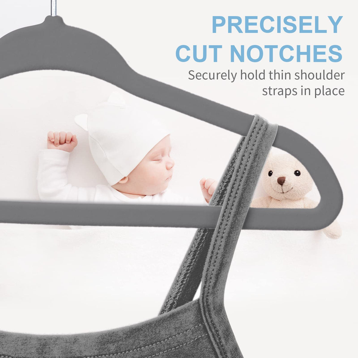 - Q: How does the non-slip feature work? A: The thick velvet coating securely holds delicate baby clothes, preventing them from slipping or developing shoulder bumps.