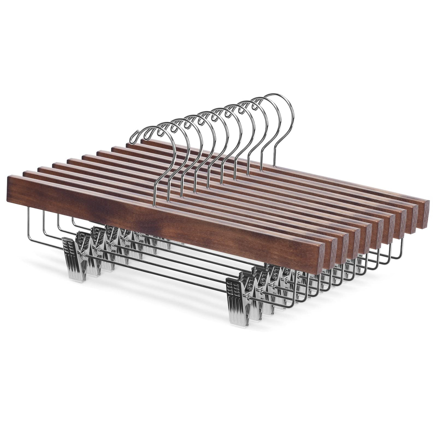 Nature Smile Wooden Pants Skirt Trousers Hangers With Clips (10Pcs Retro)