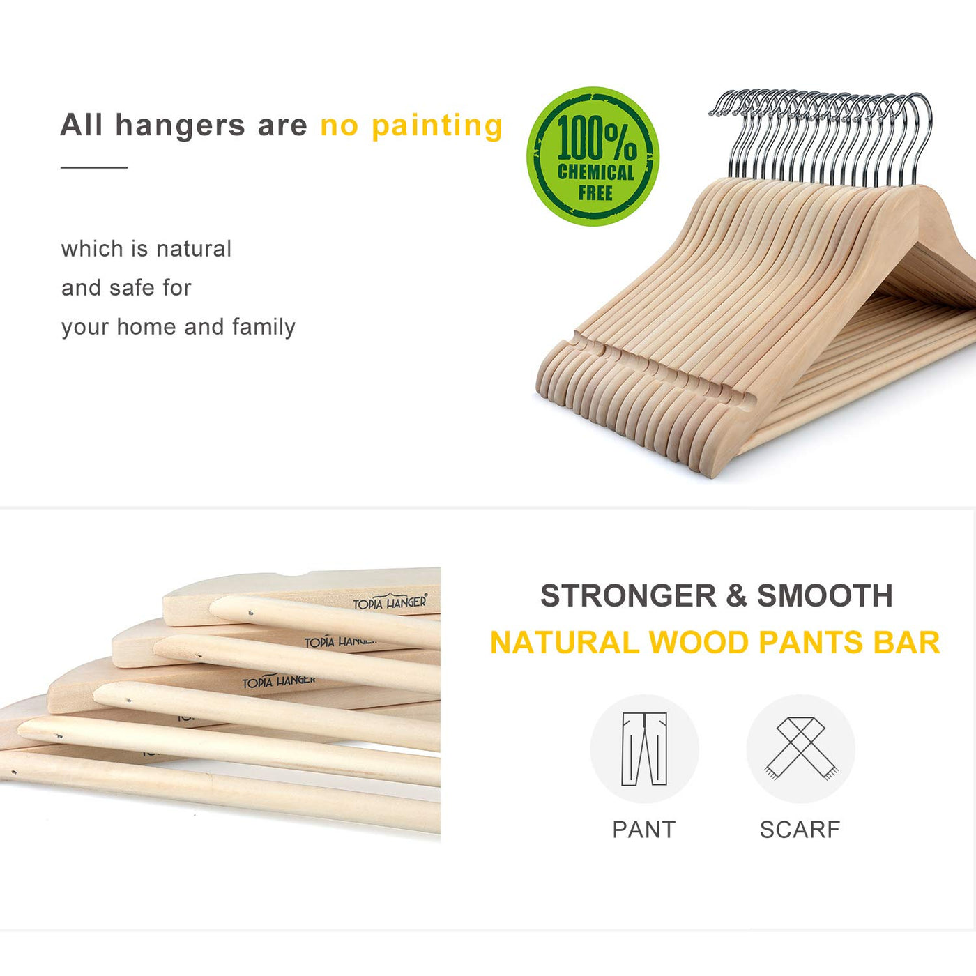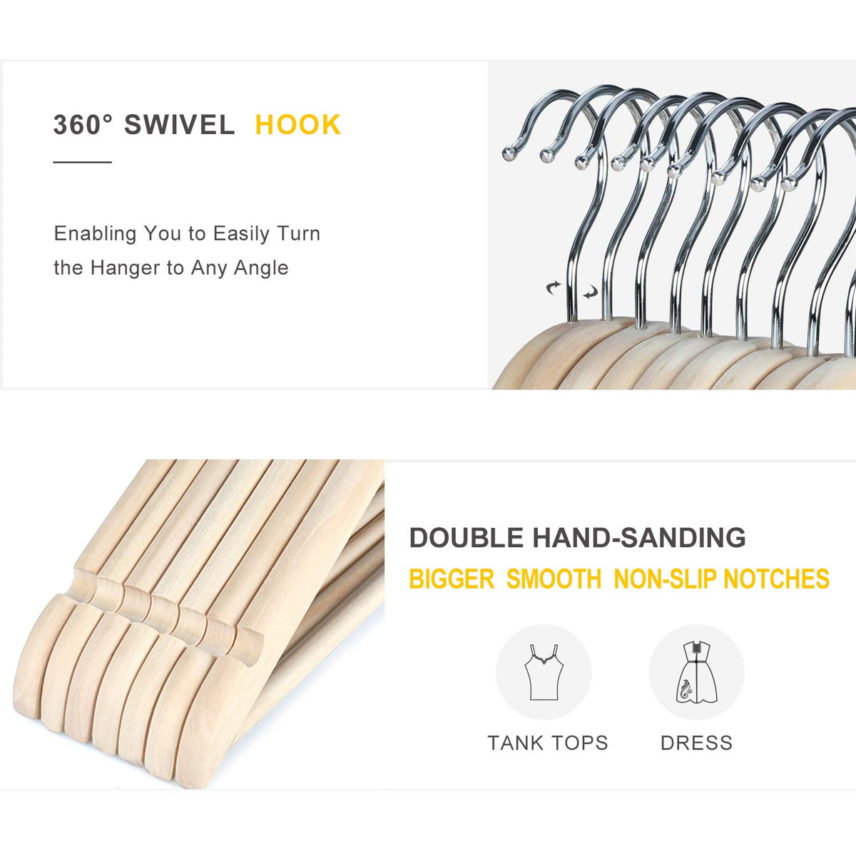Topia Hanger Natural Unfinished Wooden Hangers With 360Strong Swivel Hook And Smoothly Cut Shoulder Notches, 18-Pack Solid Wood