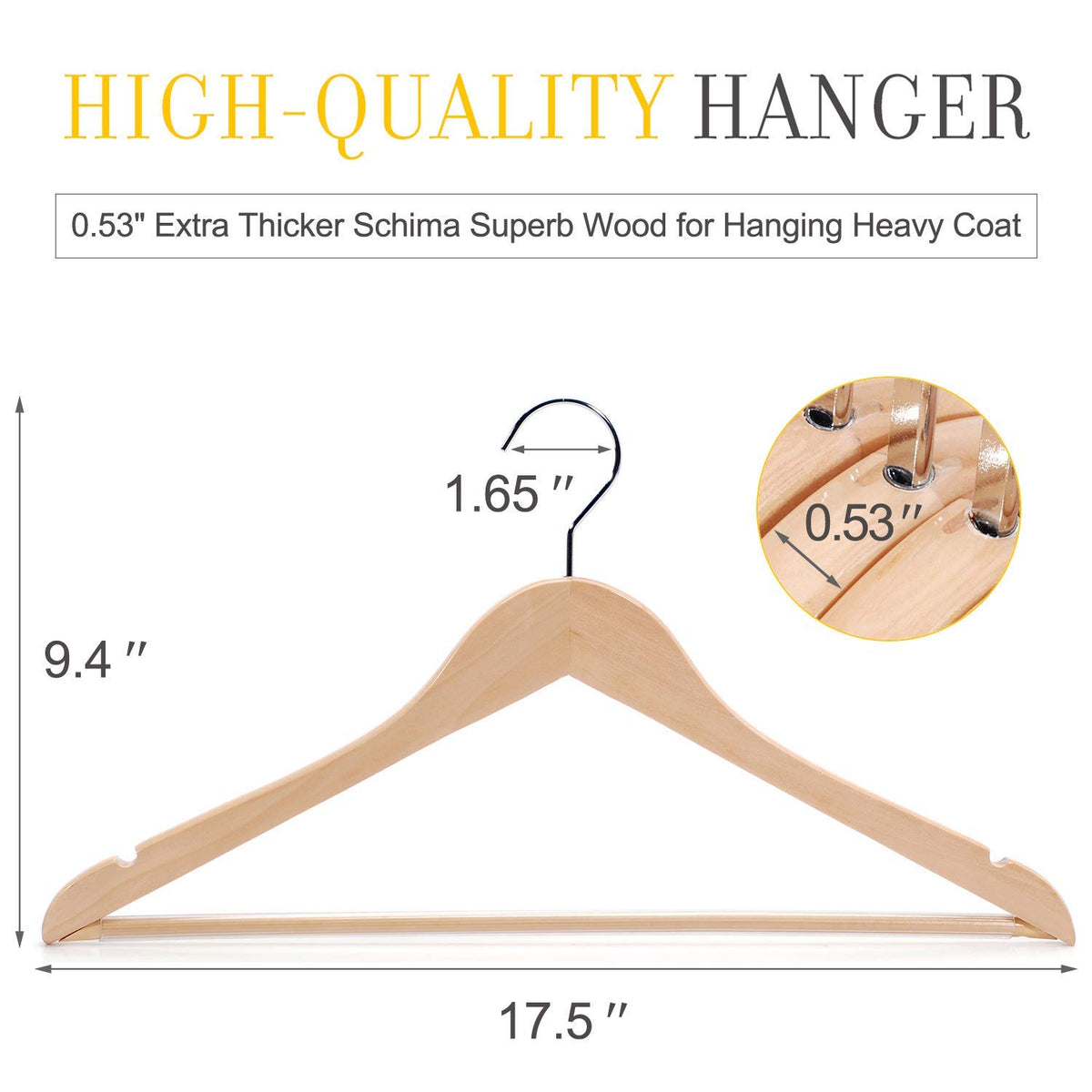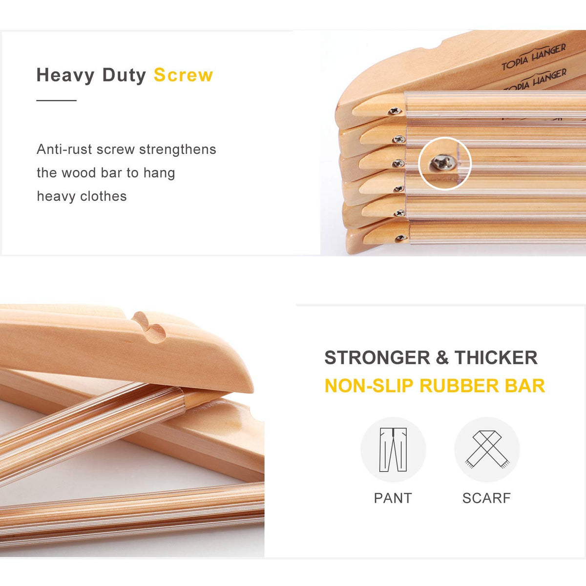 Topia Hanger Extra Strong Wooden Suit Hangers, Deluxe Wood Coat Hangers, Glossy Finish With Extra Thick Chrome Hooks & Anti-Slip Bar Material:Solid Wood Color:Natural Pack:16Pcs Each Dimension(Lxhxt): 17.5'''' X 9.4'''' X 0.53''''. Topia Hanger Wooden Suit Hanger Is Strong And Durable Enough To Hold Your Heaviest Clothes.Besides, Each Hanger Is Equipped With A Anti-Slip Bar To Fix Heavy Jeans Or Other Types Of Pants Without Damaging Them.''