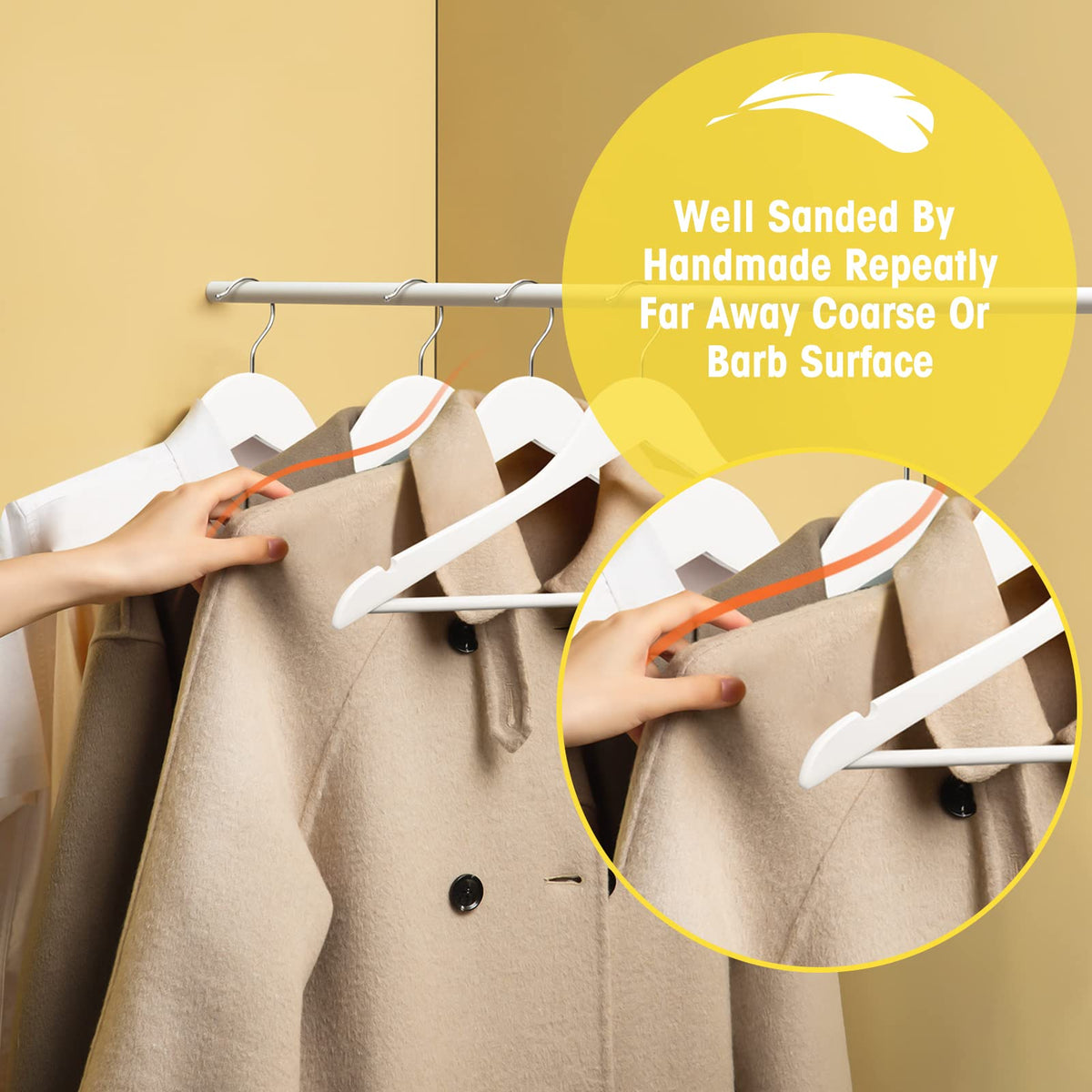 - Q: Are the hangers smooth and free of rough edges? A: Yes, the UINICOR Wooden Hangers are designed to have no rough edges and feel very smooth to the touch.