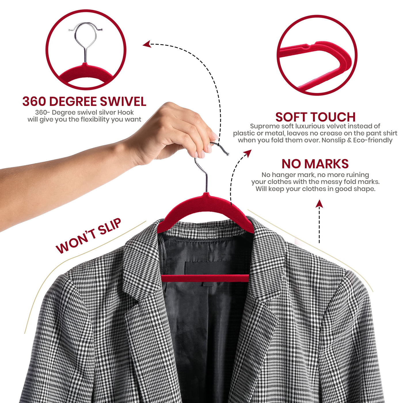 - Q: Do these hangers prevent clothes from slipping off? A: Yes, the velvet-coated surface provides a non-slip grip, preventing suits, pants, and delicate blouses from falling.