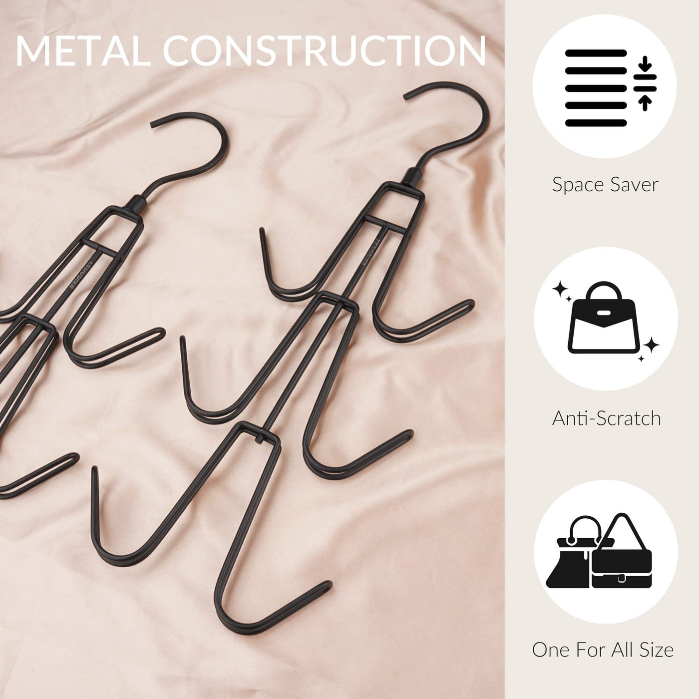 - Q: How does the hanger help keep bags in shape? A: The design of the hanger prevents purses from being squeezed or misshaped, helping them maintain their form.
