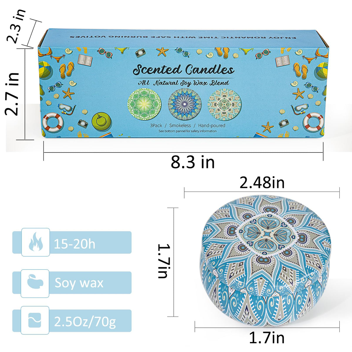 - Q: Are these candles portable for travel? A: Yes, the candles come in convenient 2.5 oz tin cans, making them perfect for travel and business trips.
