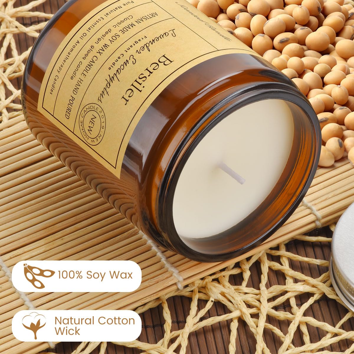 - Q: Are these candles made from natural materials? A: Yes, these candles are crafted from pure soy wax, which is a natural material, and feature a cotton wick.