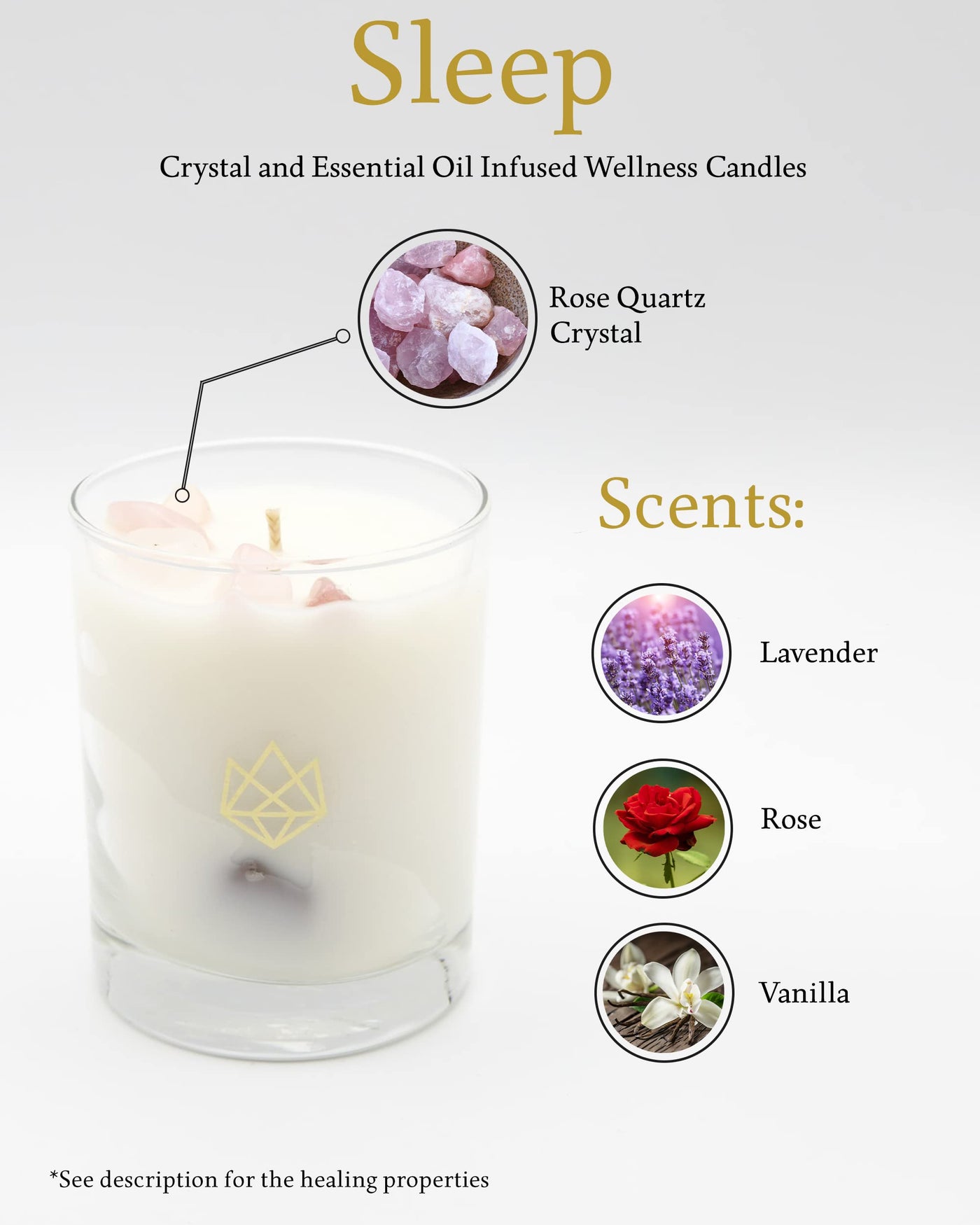 Aluminate Life Luxury Glass Jar Candle, 14.5 OZ, Sleep - Rose Quartz Crystal Infused - Scents of Rose, Lavender, and Vanilla - T