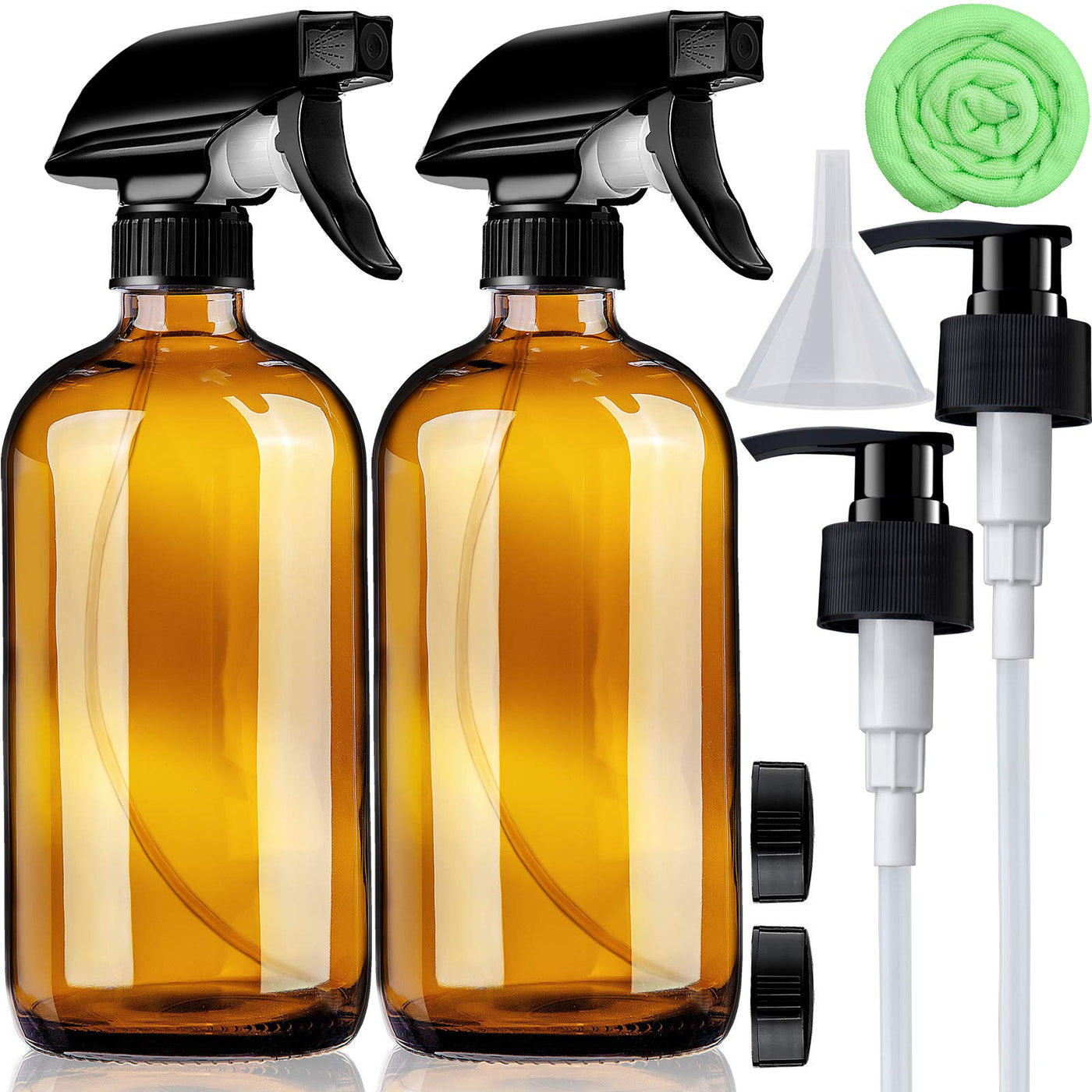 Amber Glass Spray Bottles 16 Oz Pump Bottle (2 Pack) Refillable Cosmetic Containers Brown Mist & Stream Mister For Essential Oil