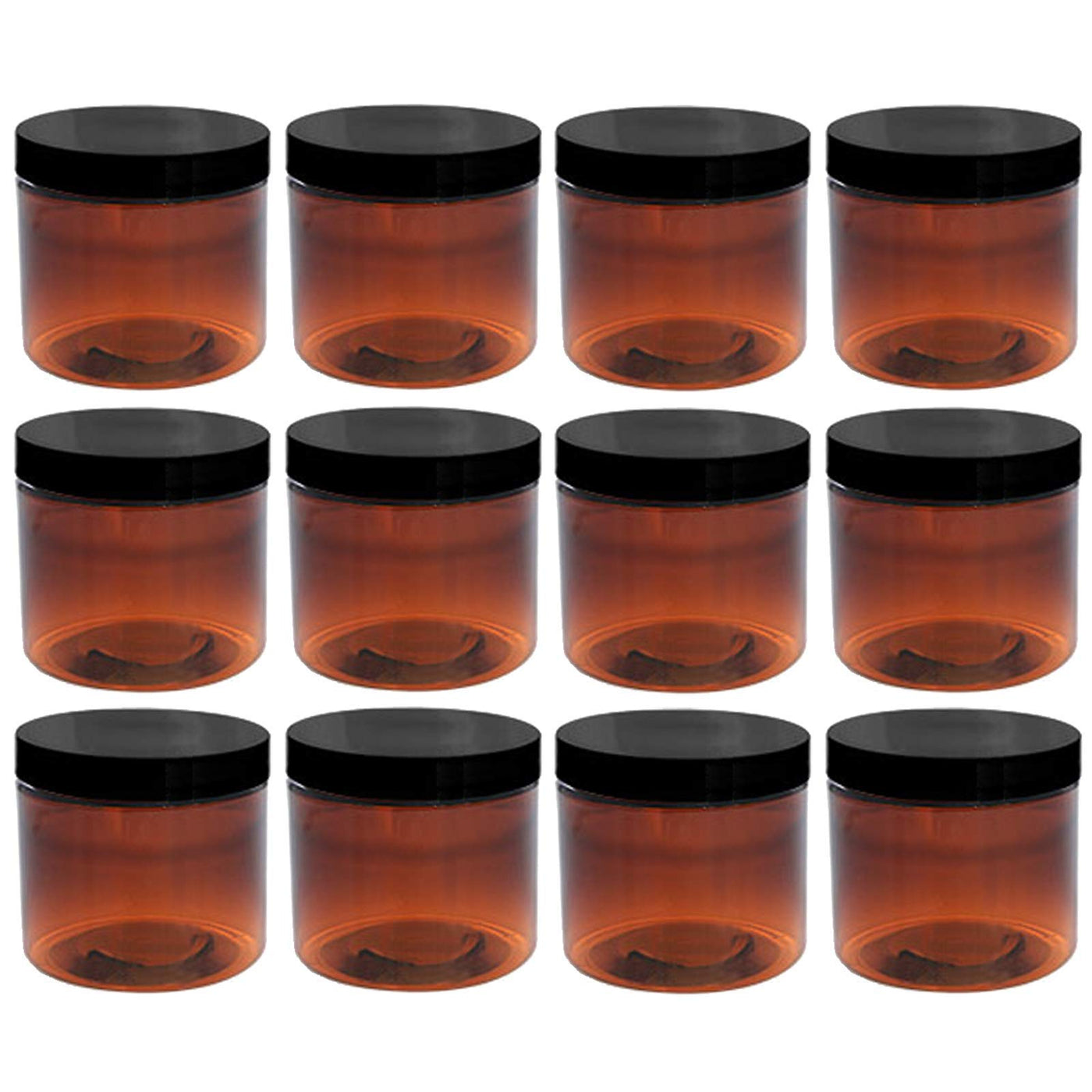 Aromine 2Oz Amber Jars With Lid, 12 Pack, Round Pet Plastic Jar Container With Blank Labels (Bpa Free)