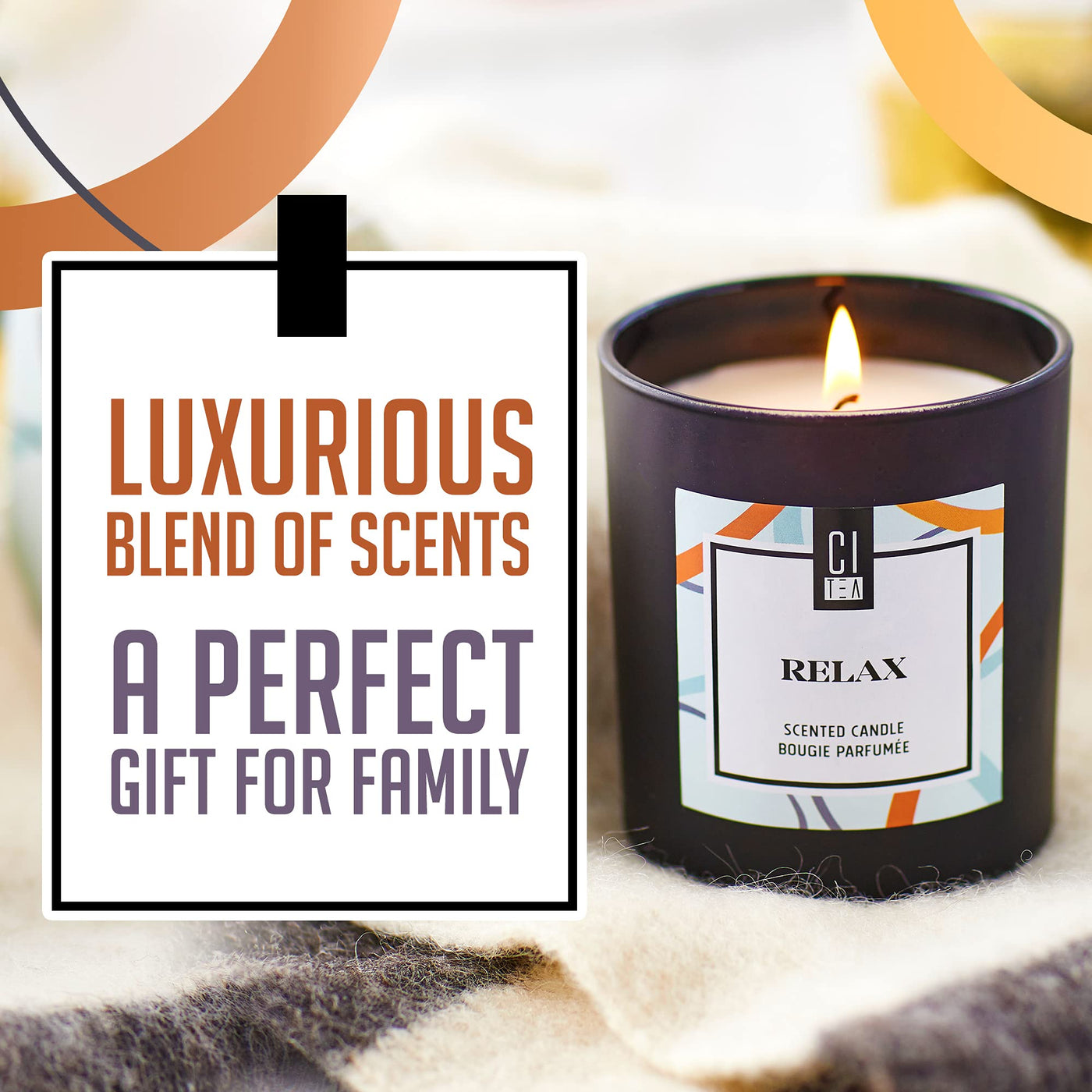 CITea - 100% Natural Soy Wax Scented Candle, Stress Relief Soy Candle with Natural Oils, Large Candle 8 Oz, Sandalwood and Musk