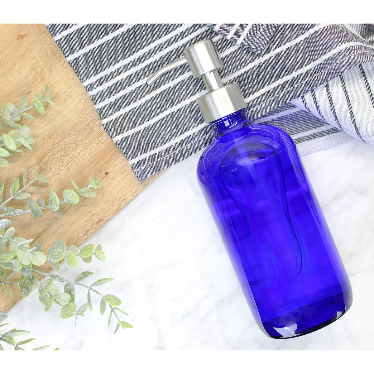 Cornucopia 16-Ounce Cobalt Blue Glass Bottles W/Stainless Steel Pumps (2-Pack), Soap Dispenser W/Lotion Pumps For Essential Oils