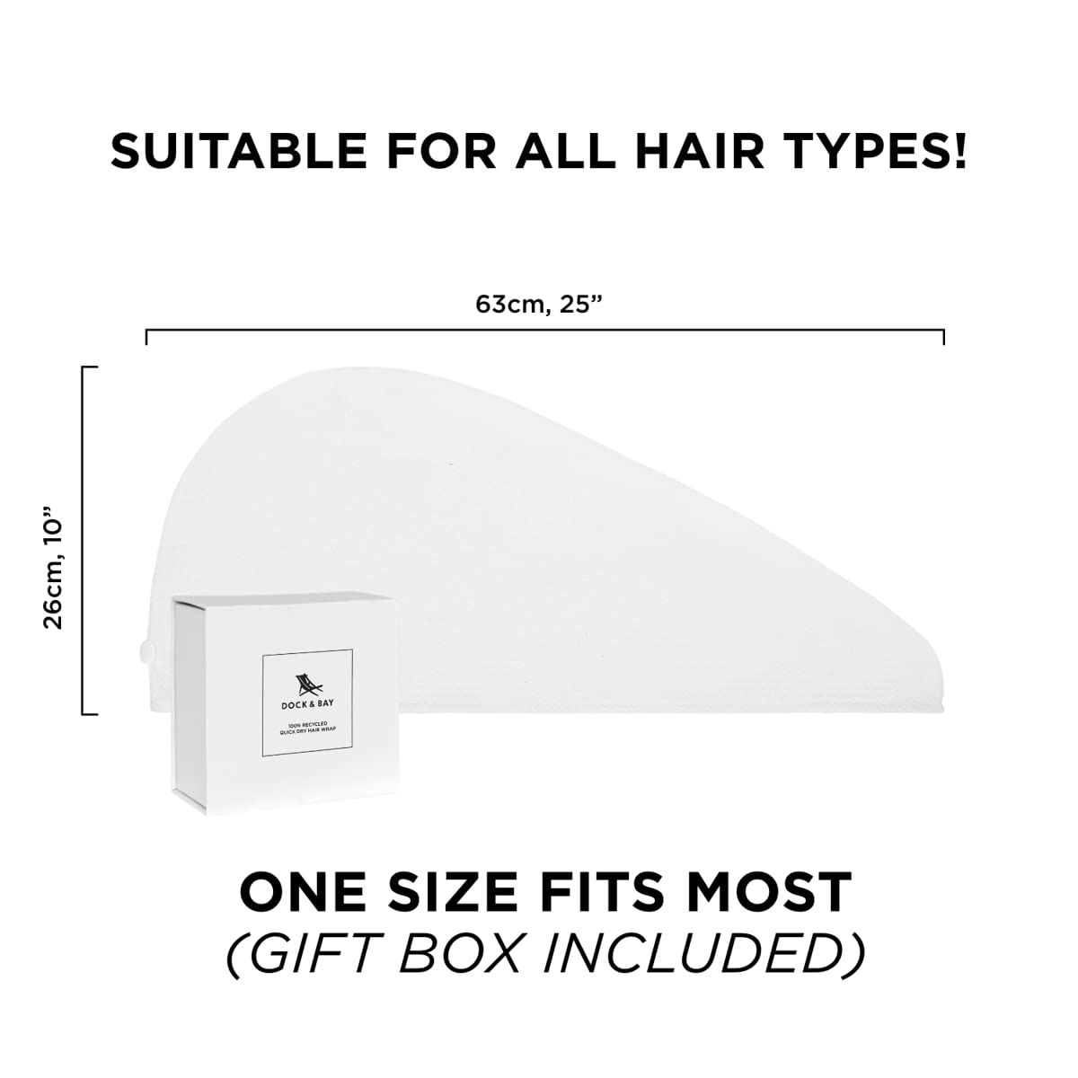 Dock & Bay Turban Hair Towel - for Home & The Beach - Super Absorbent, Quick Dry - Classic - Crystal White, One Size