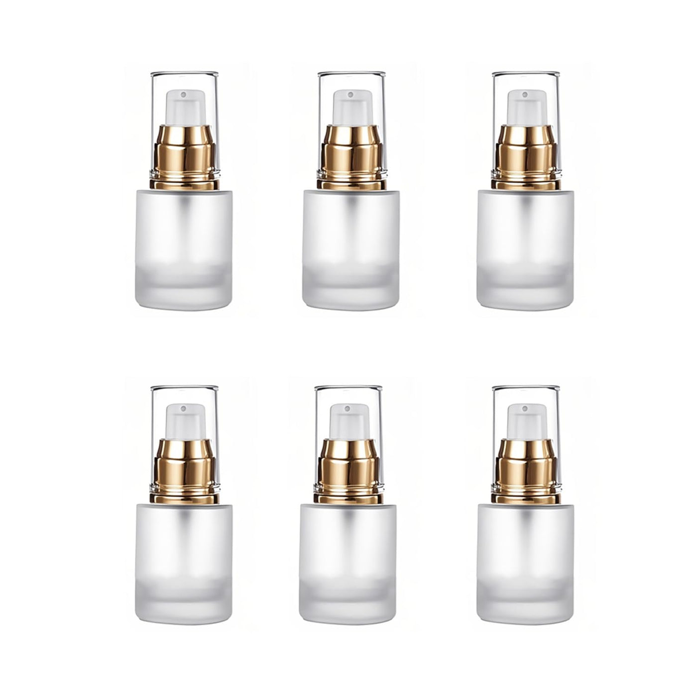 Doromy 6Pcs Refillable Frosted Glass Lotion Pump Bottles Empty Comestic Bottles Travel Containers 20Ml/0.67Oz With Pump Dispense