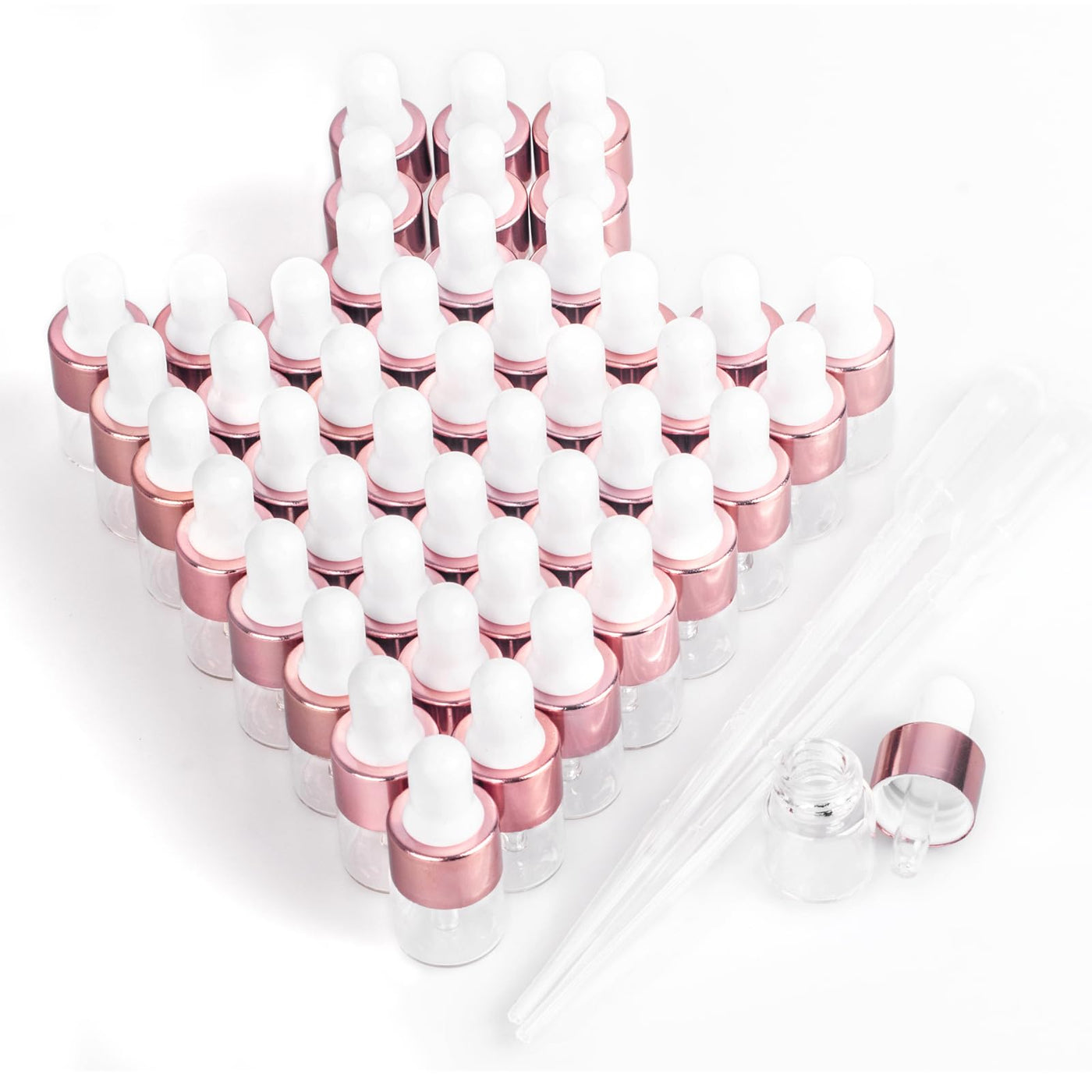 - Q: What is included in the Easeen 50 Pcs Sample Dropper Bottles package? A: The package includes 50 clear glass dropper bottles, 50 rose gold caps, and 2 plastic droppers.