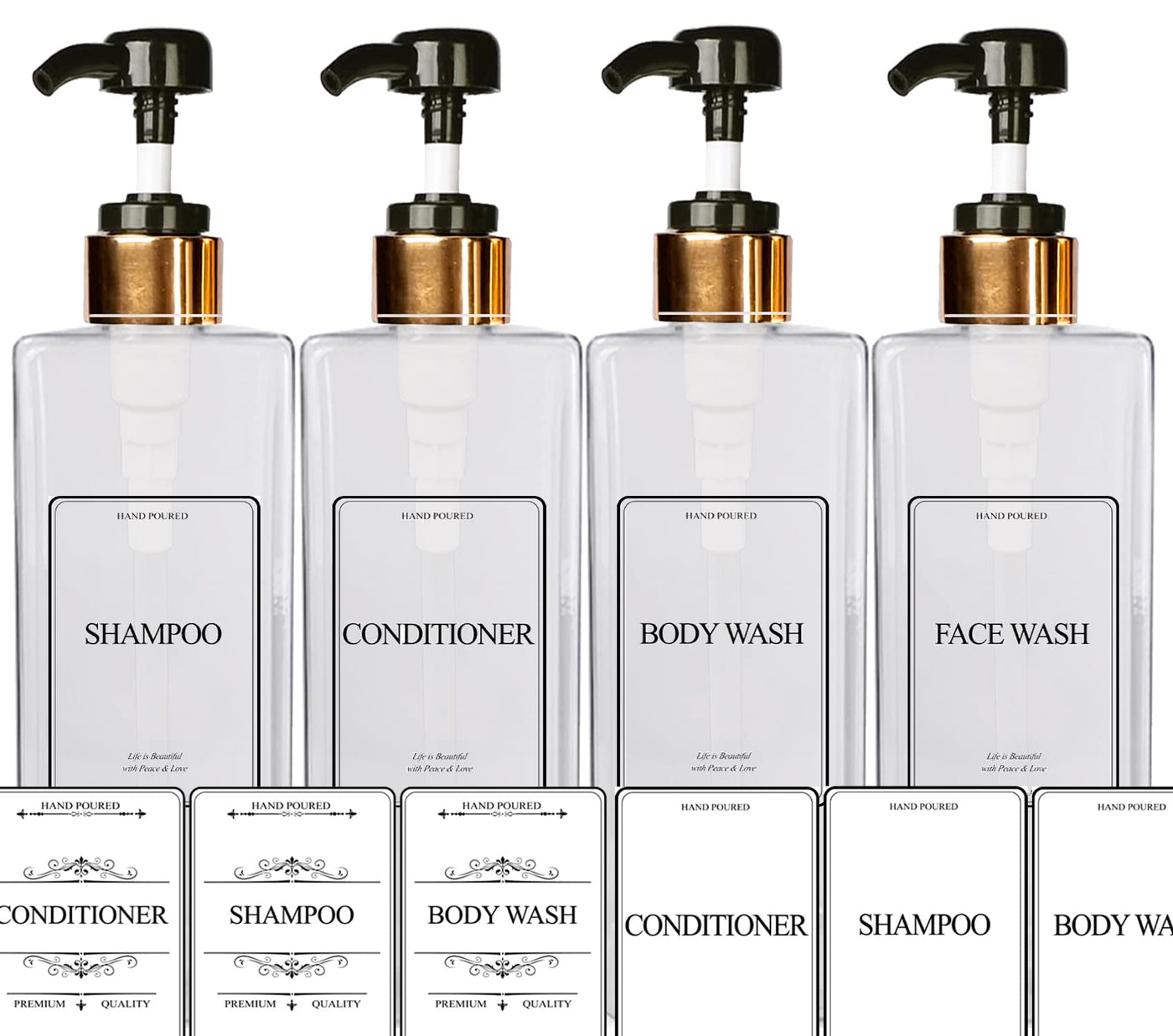 - Q: Do the bottles come with labels? A: Yes, each set includes six waterproof labels, allowing you to identify the contents of each bottle, such as shampoo, conditioner, and body wash.