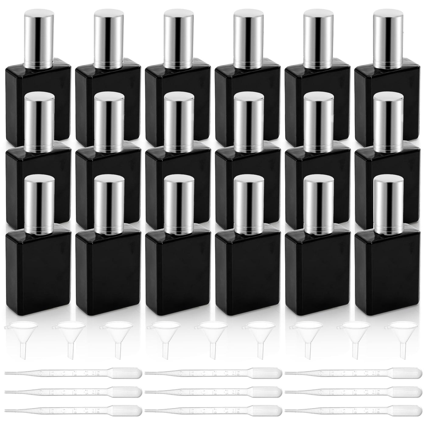 Foraineam 18 Pack 15Ml Black Glass Fine Mist Atomizer Spray Bottles, Refillable Mini Glass Perfume Bottle Fragrance Bottles, Emp