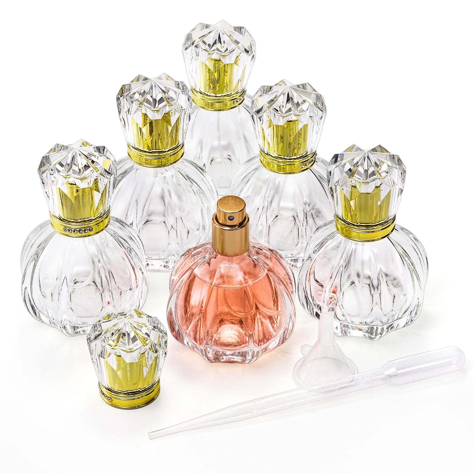 Foraineam 6 Pack 50Ml / 1.7Oz Glass Spray Bottles Pumpkin Shape Refillable Fine Mist Spray Perfume Bottle, Empty Crystal Glass F