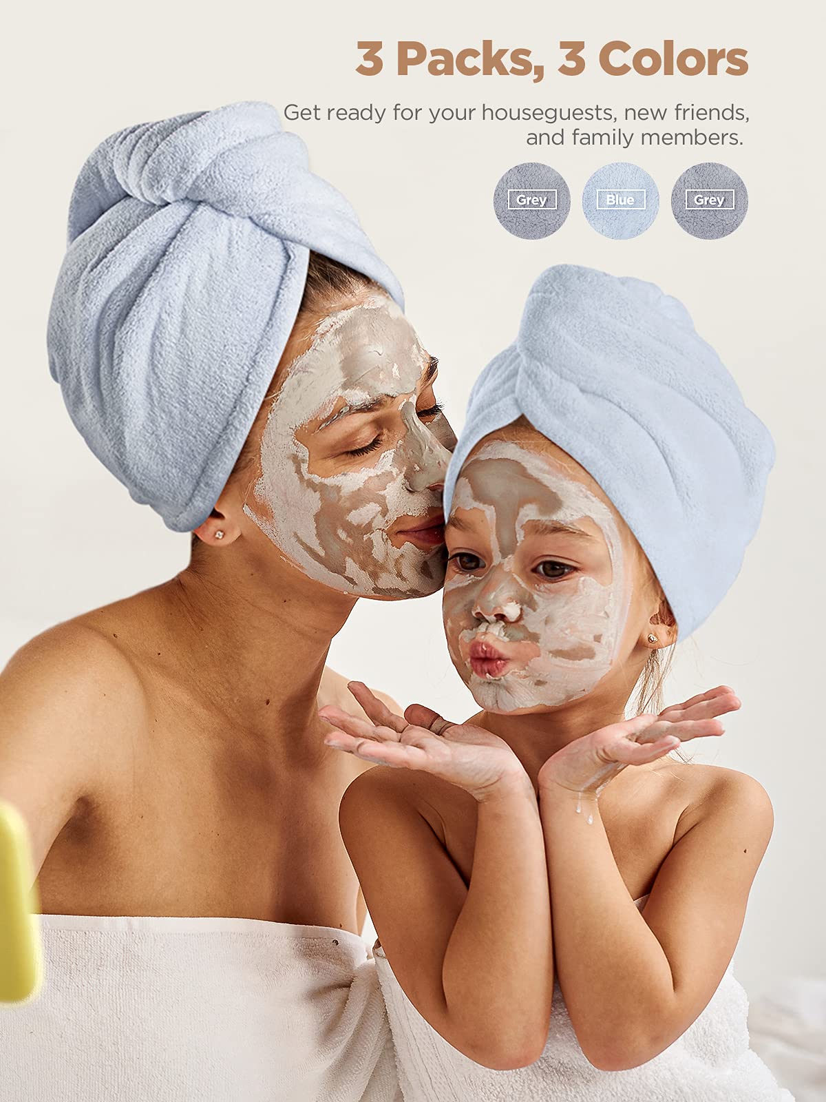 Hicober Microfiber Hair Towel, 3 Packs Hair Turbans for Wet Hair, Drying Hair Wrap Towels for Curly Hair Women Anti Frizz(Grey,B