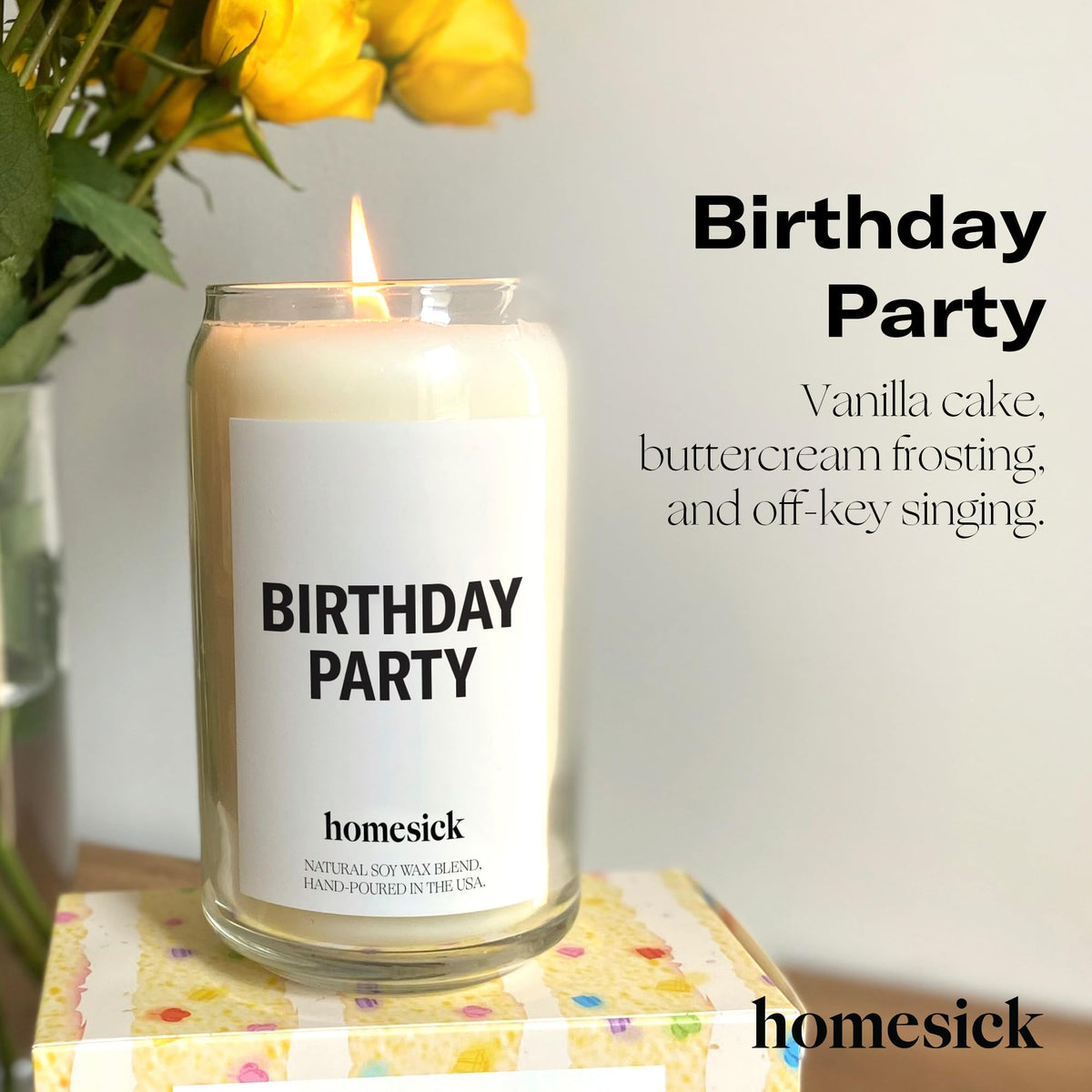 Homesick Premium Scented Candle, Birthday Party - Scents of Butter, Cream, Vanilla, 13.75 oz, 60-80 Hour Burn, Natural Soy Blend