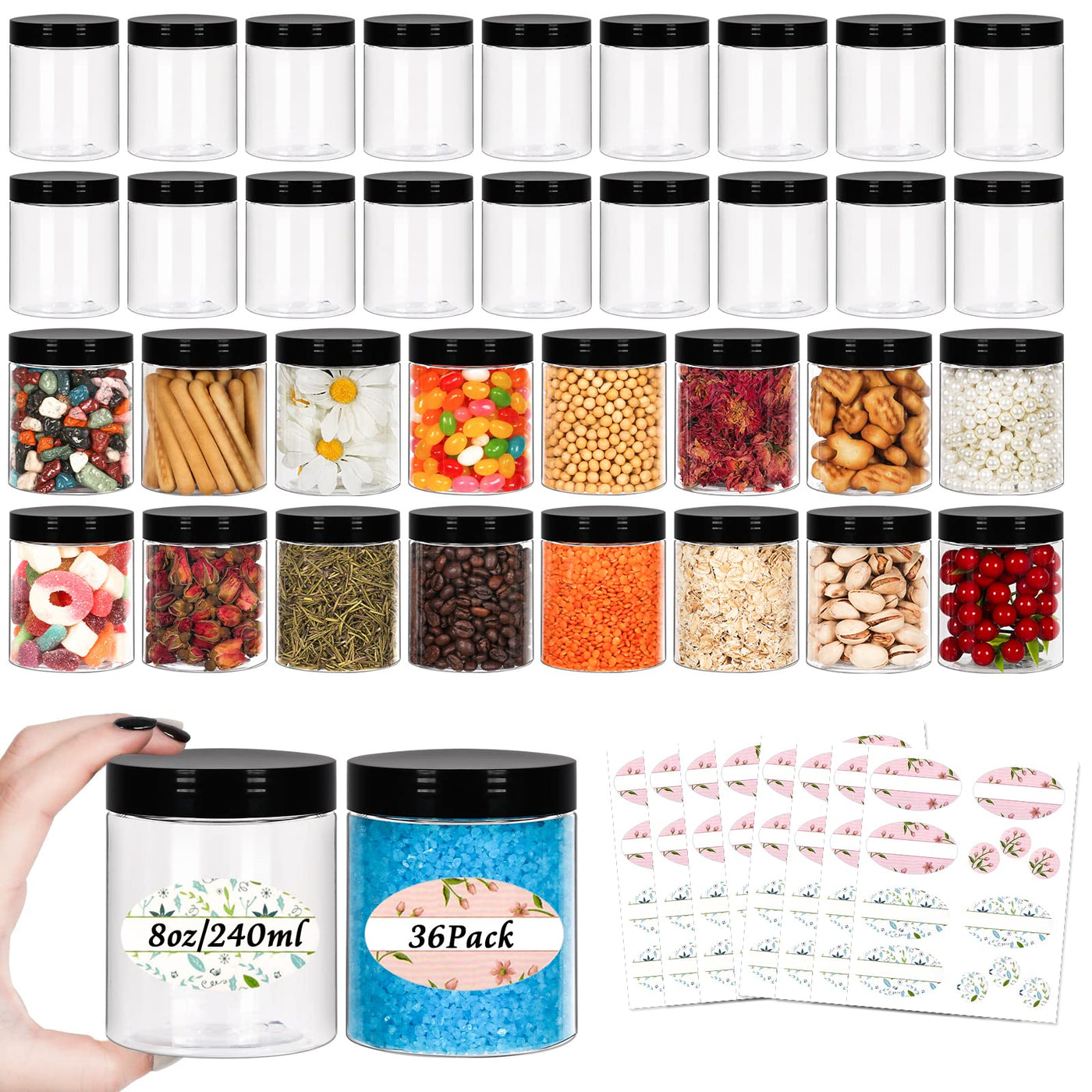 Jaisie.W 8Oz Plastic Jars With Lids 36Pack, 8Fl.Oz Plastic Containers With Lids- Clear Food-Grade Plastic Storage Containers Wit