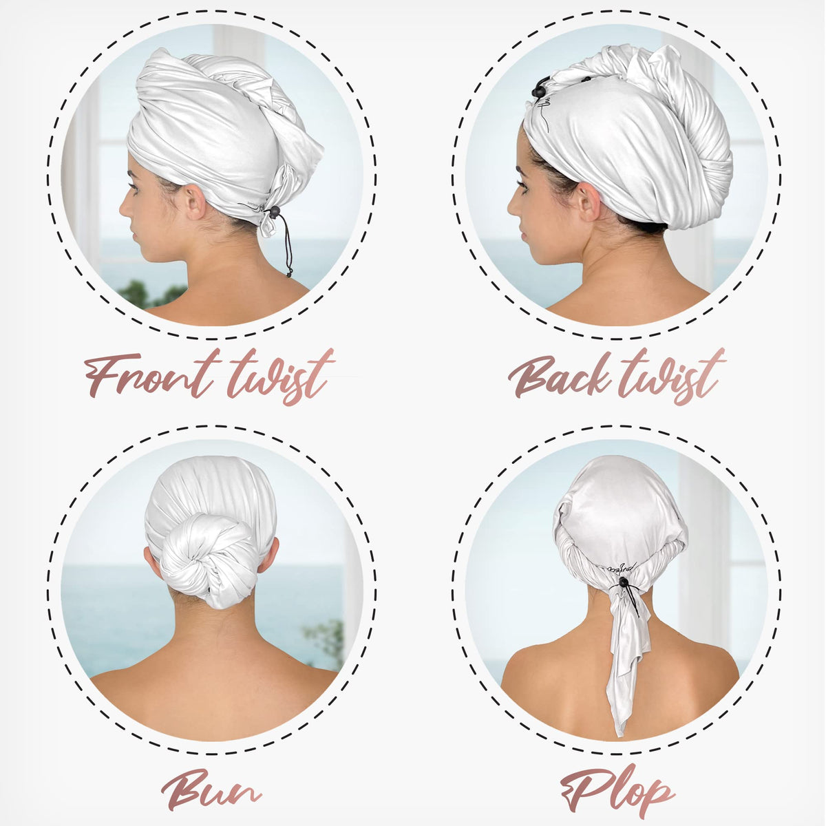 - Q: How does the patented drawstring work? A: The patented drawstring secures the towel in place on your head, preventing it from slipping off while you dry your hair.