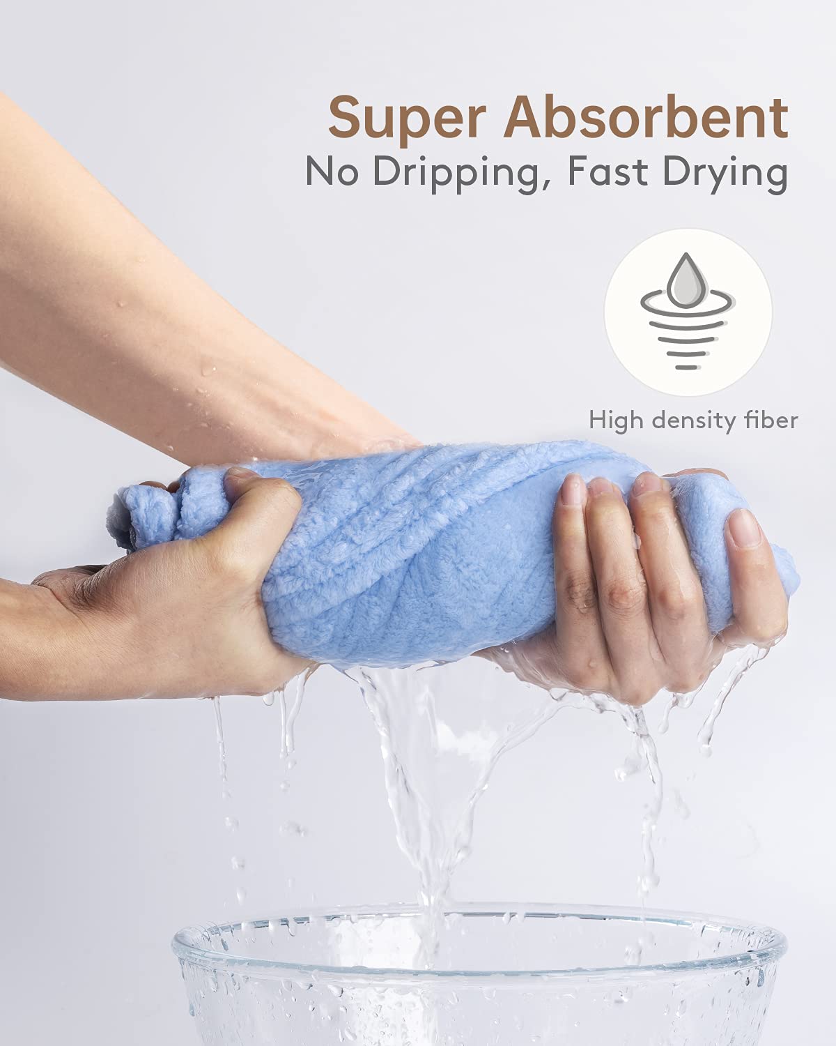 YFONG Microfiber Hair Towel 3 Pack, Hair Towel with Button, Super Absorbent Hair Towel Wrap for Curly Hair, Fast Drying Hair Tur