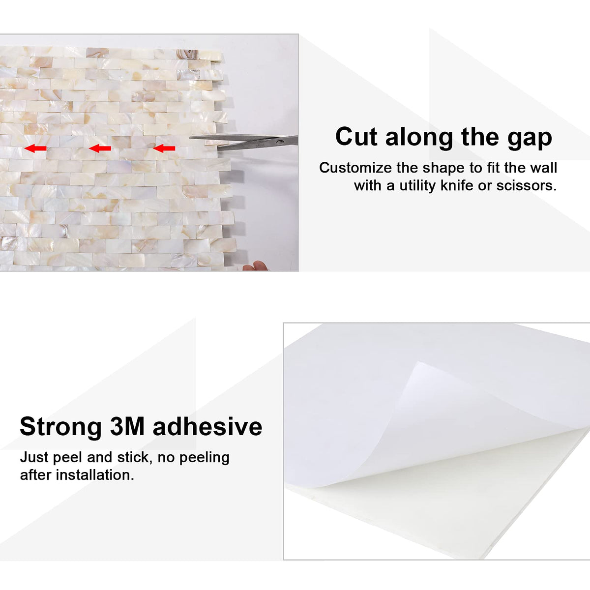 1 - Sheet Pearl Shells Tile Peel and Stick Backsplash, Self Adhesive Wall Tile for Kitchen, Bathroom, Bedroom (11.8X11.8, Nature