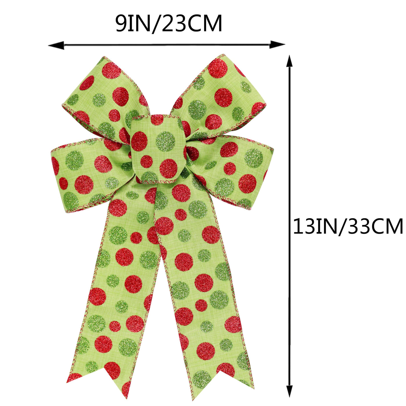 10 Pack Red Green Bows Christmas Tree Decorations,9 x13 Large Wreath Bow with Glitter Red Green Dot for Xmas Home Fence Stairs Railing Fireplace Indoor Outdoor Front Door Decor