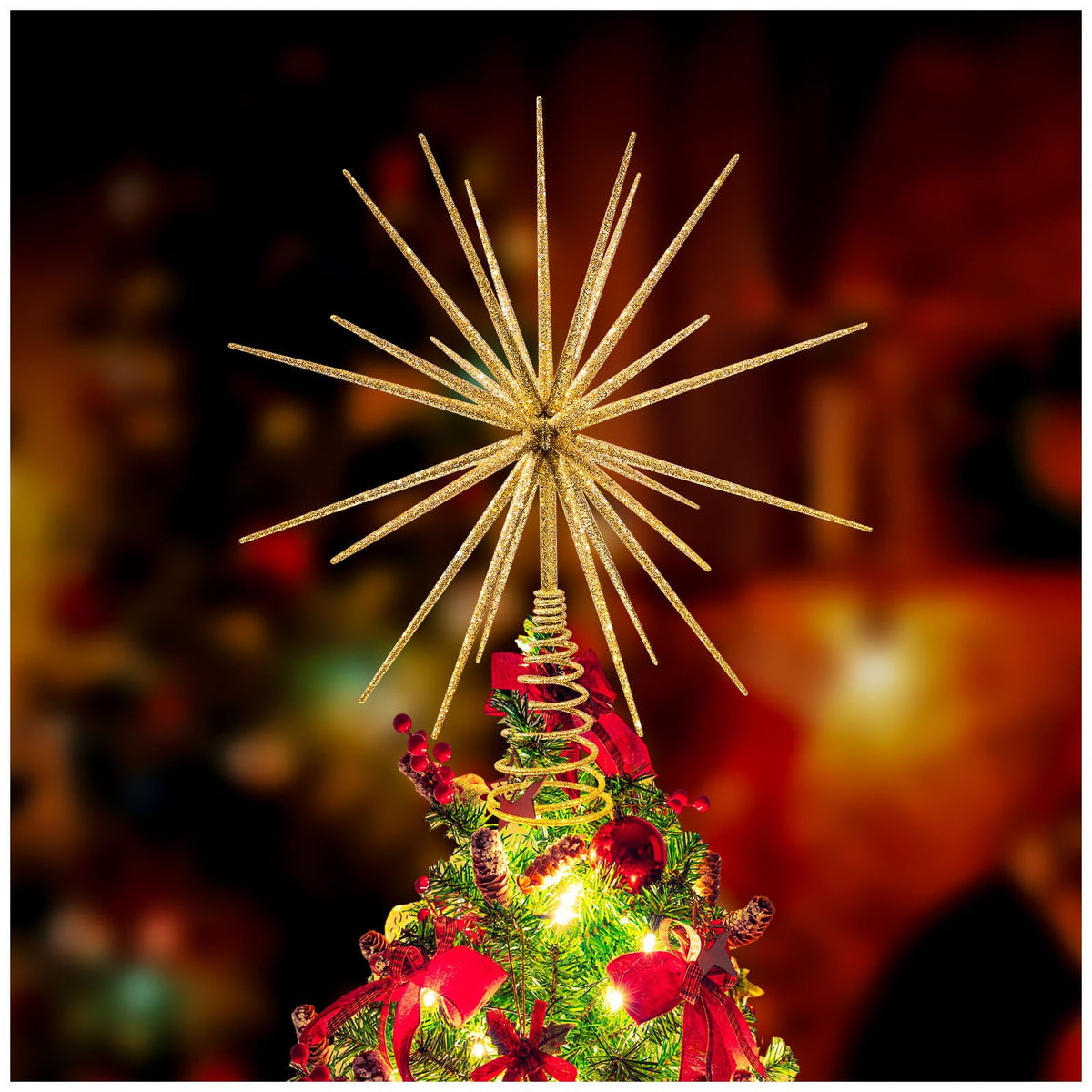 13.7 Inch Gold Christmas Tree Topper - 3D Burst Gold Tree Topper, Exploding Star Christmas Tree New Year Holiday Tree Decoration