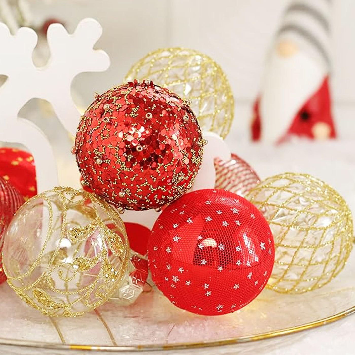25Pcs Christmasl Ornaments Set,2.36/60mm Red and Gold Christmas tress Decorations,Clear Plastic Shatterproof Christmas Ball Hang