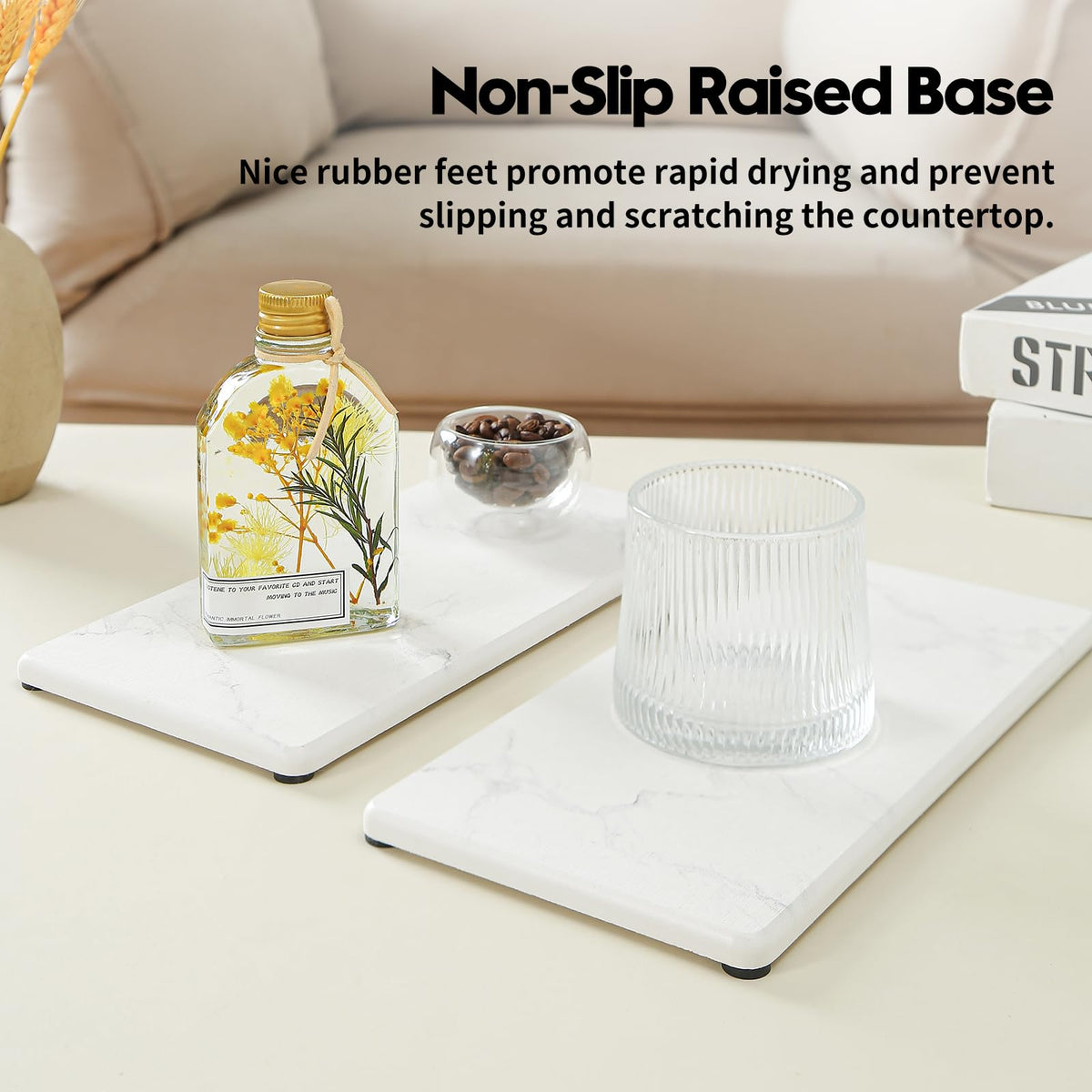 2PCS 10x 5 Large Bathroom Sink Vanity Trays, Water Absorbing Diatomite Stone Quick Drying Mat for Kitchen Counter, Dish Rack Dis