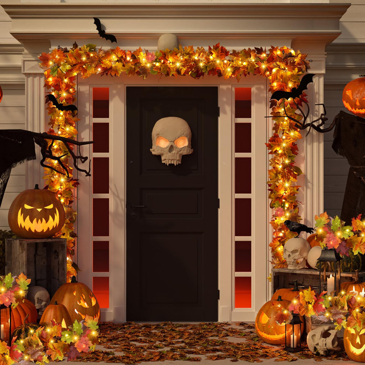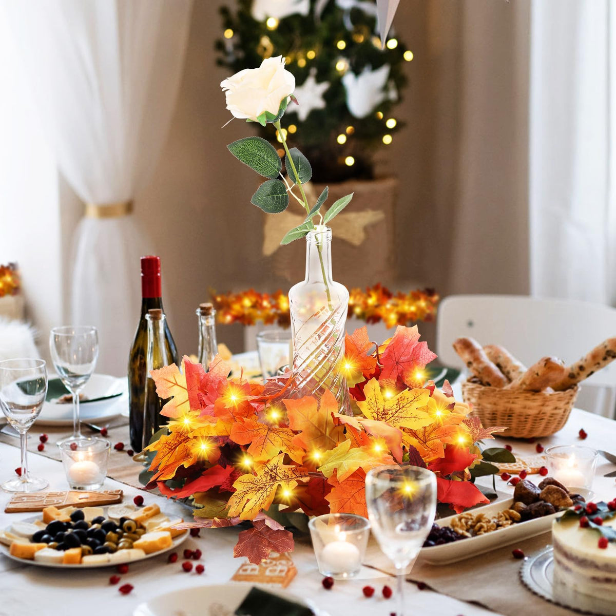 2PCS Fall Garland with Light, Fall Leaves Decor Garland Lights 40 LED Artificial Fall Leaves Autumn Garland Halloween Decoration