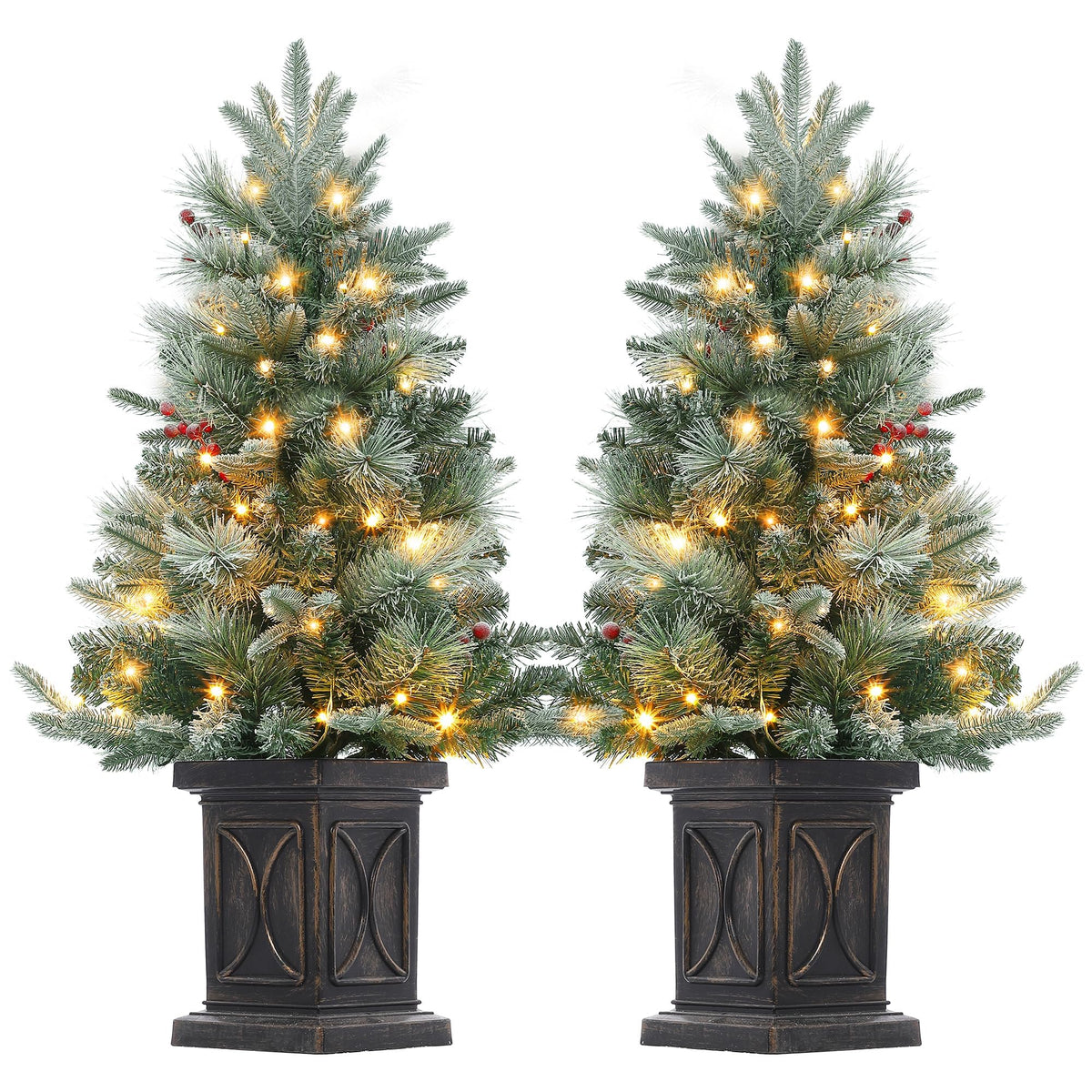 3 ft Prelit Artificial Christmas Tress with 78 Warm White Lights, Brown Lamp Base, Snow Flocked Xmas Tree for Christmas, Bedroom
