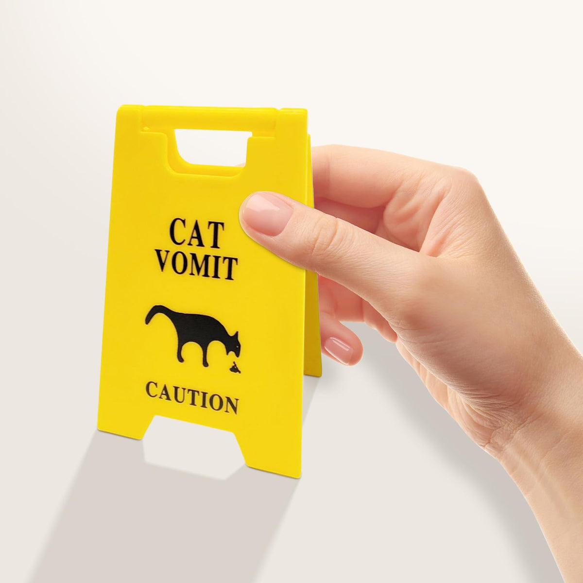 Hilarious Cat Vomit Warning Sign Set What You Get: 3 durable caution signs (5x2.3) 4 mini wooden fences (1.2x4) 1 cat-shaped coaster (4.68x2.9) Why Cat Owners Love This: Humorous design for cat owners High-visibility yellow signs Practical coaster + decorative fences Creates playful pet-friendly spaces Ideal For: Cat lovers' gifts Office decor Pet-friendly spaces Multi-cat families