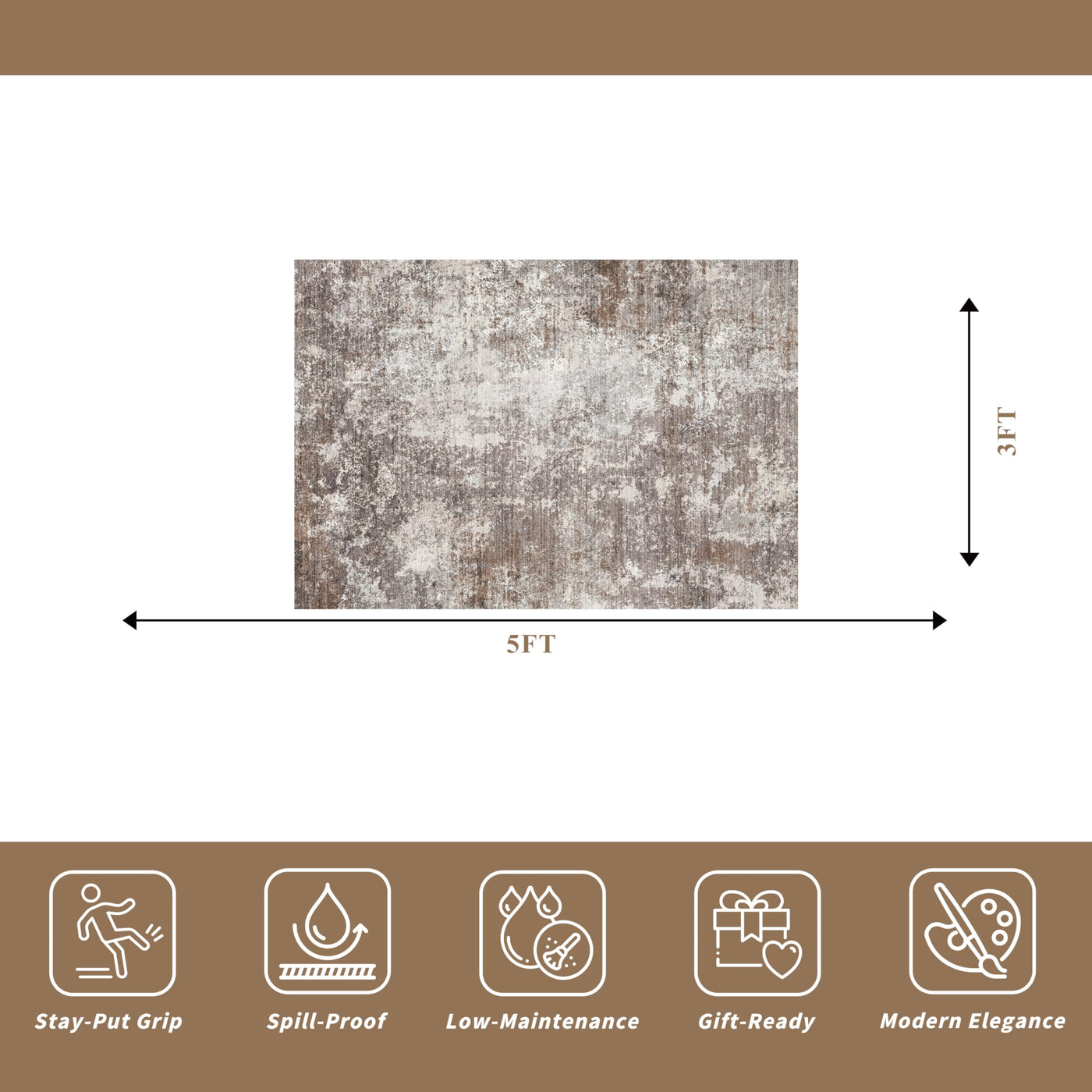 3x5 Washable Entryway Rug - Non-Slip Rubber Backed Small Area Rug for Kitchen, Bedroom, Living Room, Office - Soft Low-Pile Thin