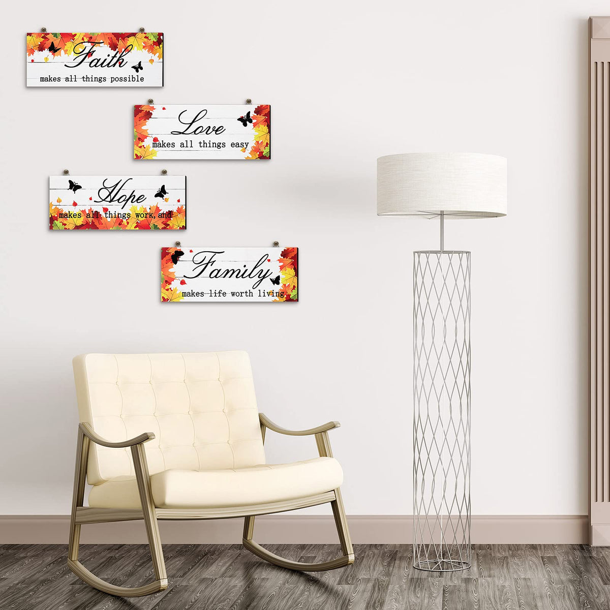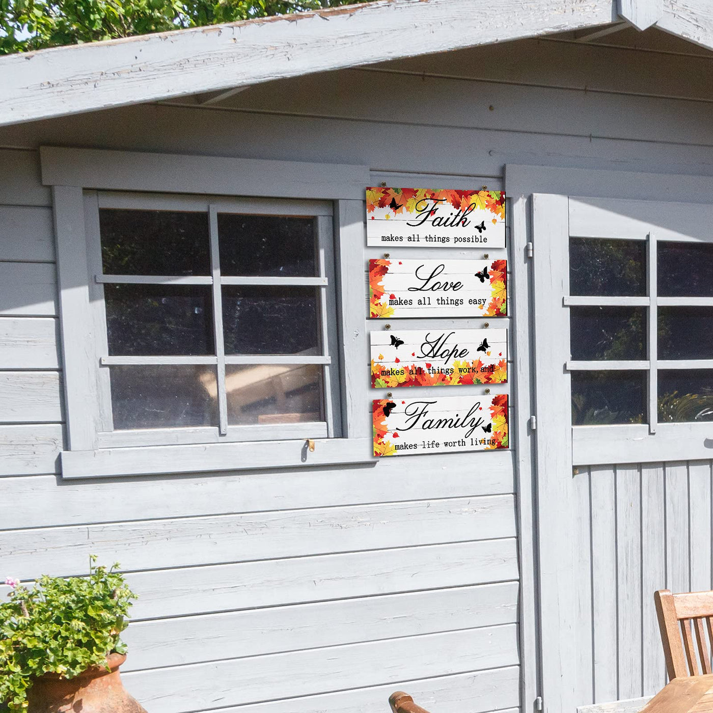 4 Pieces Thanksgiving Fall Door Decoration Maple Door Plaque Faith Hope Family Wood Sign Maple Leaf Hanging Sign Rustic Farmhous