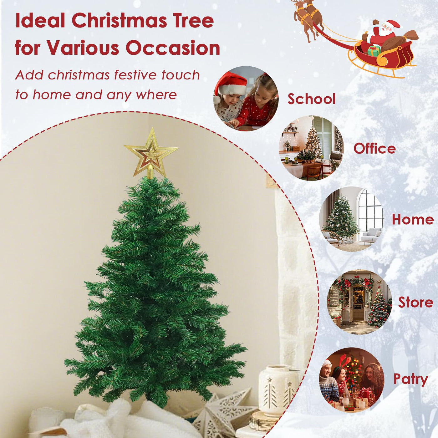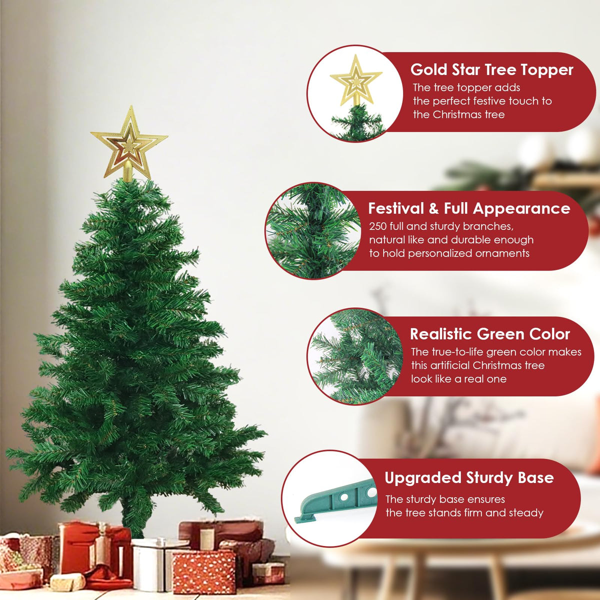 250 Branch Full & Realistic Look Christmas Tree - This small Christmas tree features 250 full branches for a natural pine-like appearance. Its sturdy construction holds garlands and personalized ornaments beautifully, making it perfect for Christmas decorations indoor or festive office decor.