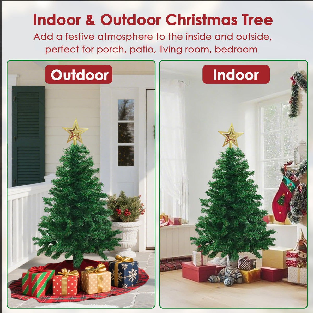 4FT Small Christmas Tree Christmas Decorations, 250 Branch Mini Chrismas Tree with Foldable Stand, Artificial Xmas Tree Christma