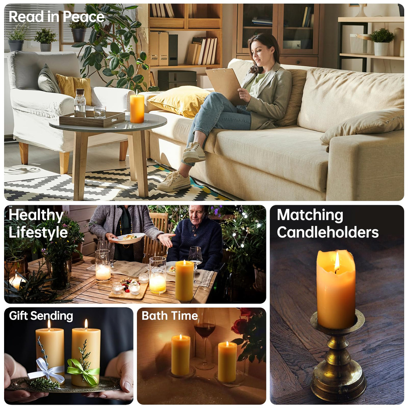 6 Packs Natural Beeswax Candles, 100% Pure Beeswax Pillar Candles for Emergency Prayer Home Decor, Bees Wax Candle for Relax, Sm