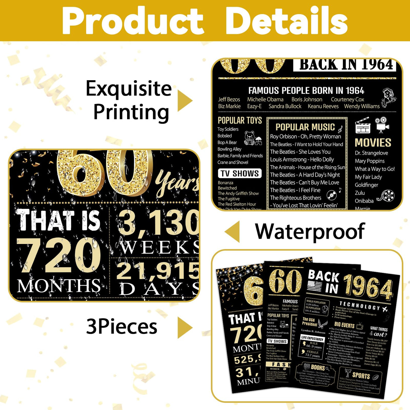 60Th Birthday Decorations Back In 1964 Posters 3 Pieces 11 X 14 1964 Birthday Gifts For Men 60 Years Ago Party Decorations Suppl