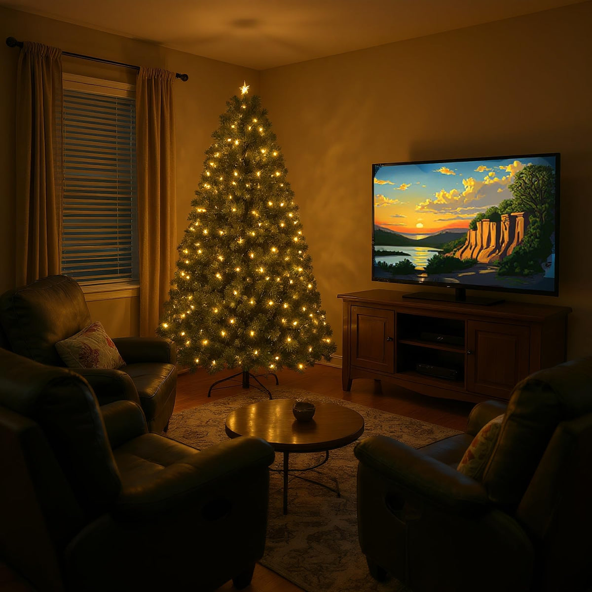 Celebrate the season in timeless style with this 6-foot Green Pre-Lit Artificial Christmas Tree, designed for warmth, beauty, and effortless holiday cheer. Featuring 250 soft warm white LED lights pre-strung across lush, full-bodied branches, this tree brings classic charm and cozy glow to any space-without the hassle of stringing lights yourself. With its realistic silhouette and dense PVC tips, youll have plenty of space to hang your favorite ornaments, garlands, and ribbons. The hinged branch system ensures quick setup and easy fluffing, while the sturdy metal stand provides stable support through the entire holiday season. Perfect for traditional family homes, modern apartments, festive office corners, or retail window displays, this 6FT green tree is a must-have for those who value simplicity, beauty, and classic Christmas atmosphere. From cozy living rooms to cheerful classrooms, this pre-lit tree turns any indoor space into a holiday haven. Simply assemble, plug in, and let the warm lights spark the spirit of the season.
