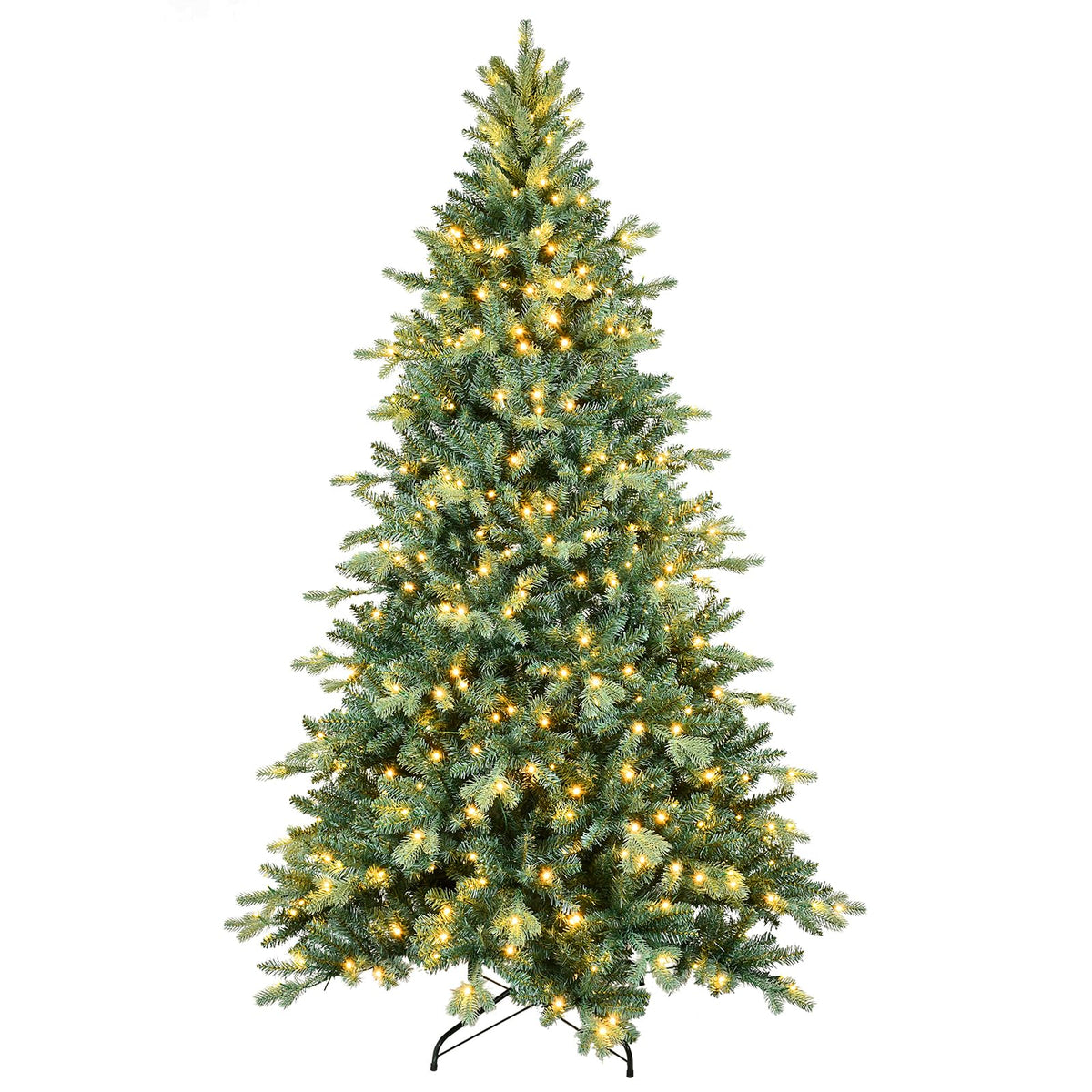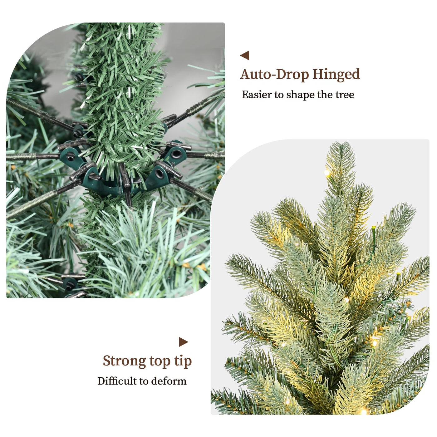 8ft Blue Spruce Artificial Christmas Tree Pre Lit with 750 Lights Hinged Branch Xmas Tree with Foldable Metal Tree Stand for Chr